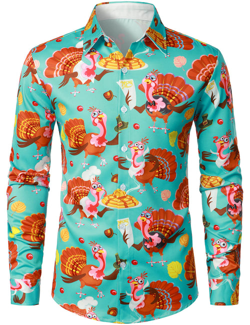 Men's Thanksgiving Gift Funny Turkey Holiday Button Long Sleeve Shirt