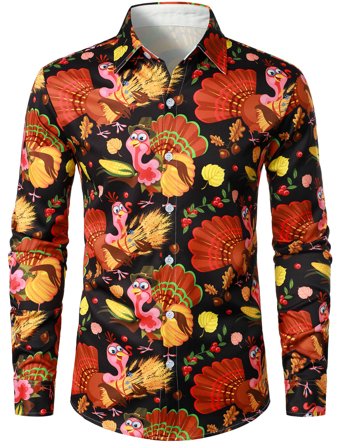 Men's Thanksgiving Turkey Day Holiday Fall Festival Gift Button Up Long Sleeve Shirt