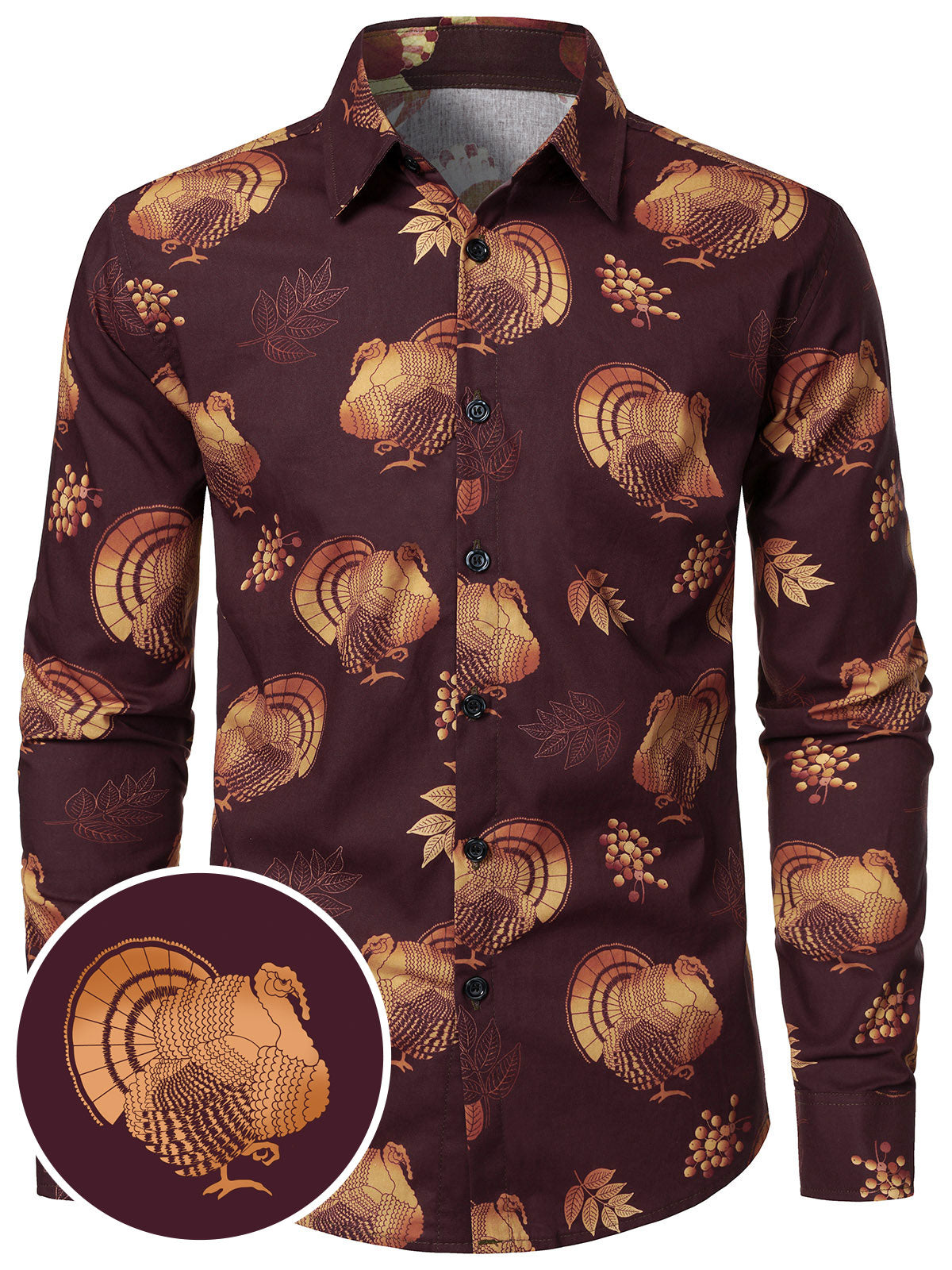Men's Thanksgiving Turkey Vintage Funny Cotton Long Sleeve Shirt