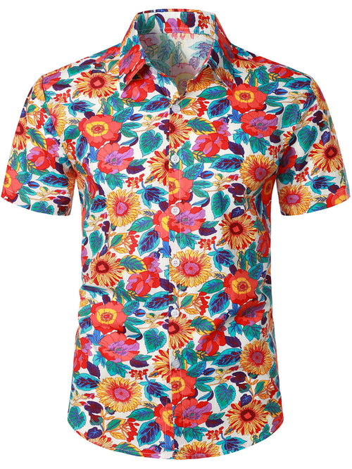 Men's Floral Cool Flower Summer Cotton Button Up Beach Short Sleeve Hawaiian Shirt