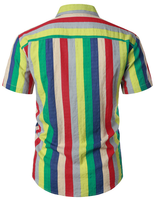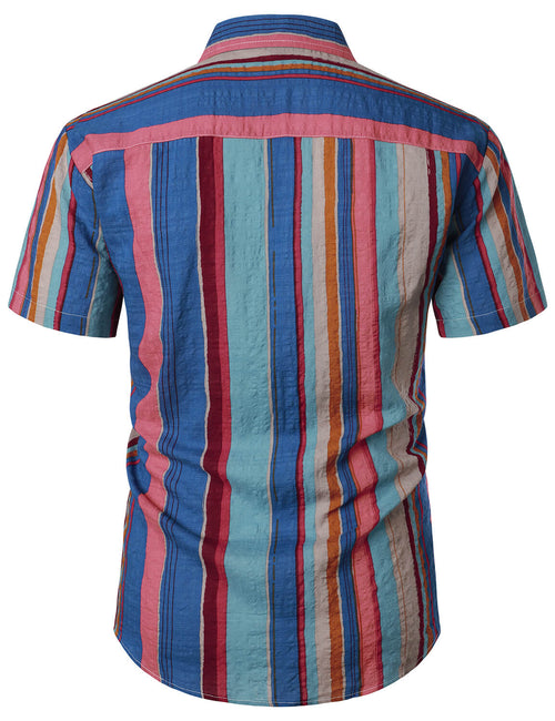 Men's Breathable Cotton Stand Collar Short Sleeve Striped Classic Shirts