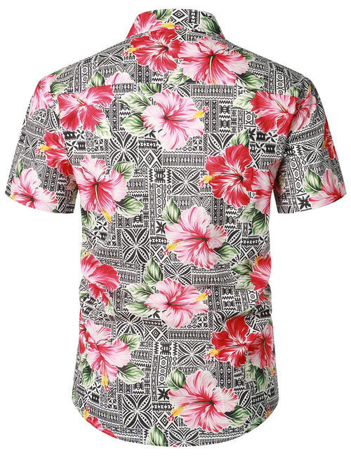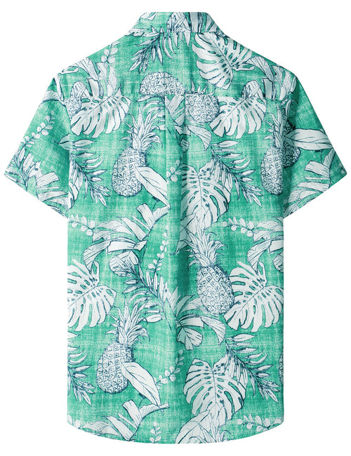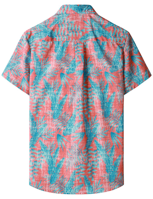 Men's Tropical Leaf Print Hawaiian Pocket Short Sleeve Shirt