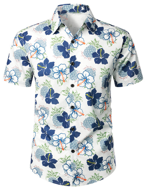 Men's Floral Cotton Tropical Hawaiian Short Sleeve Shirt