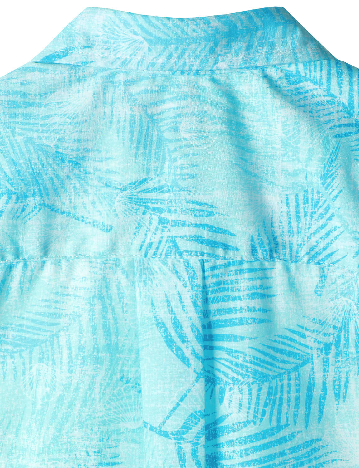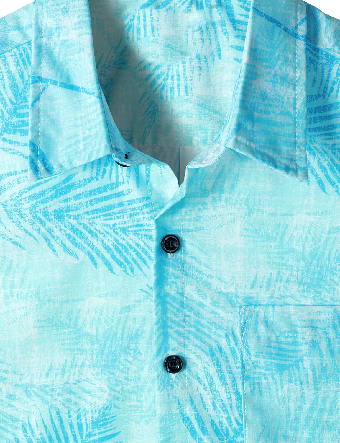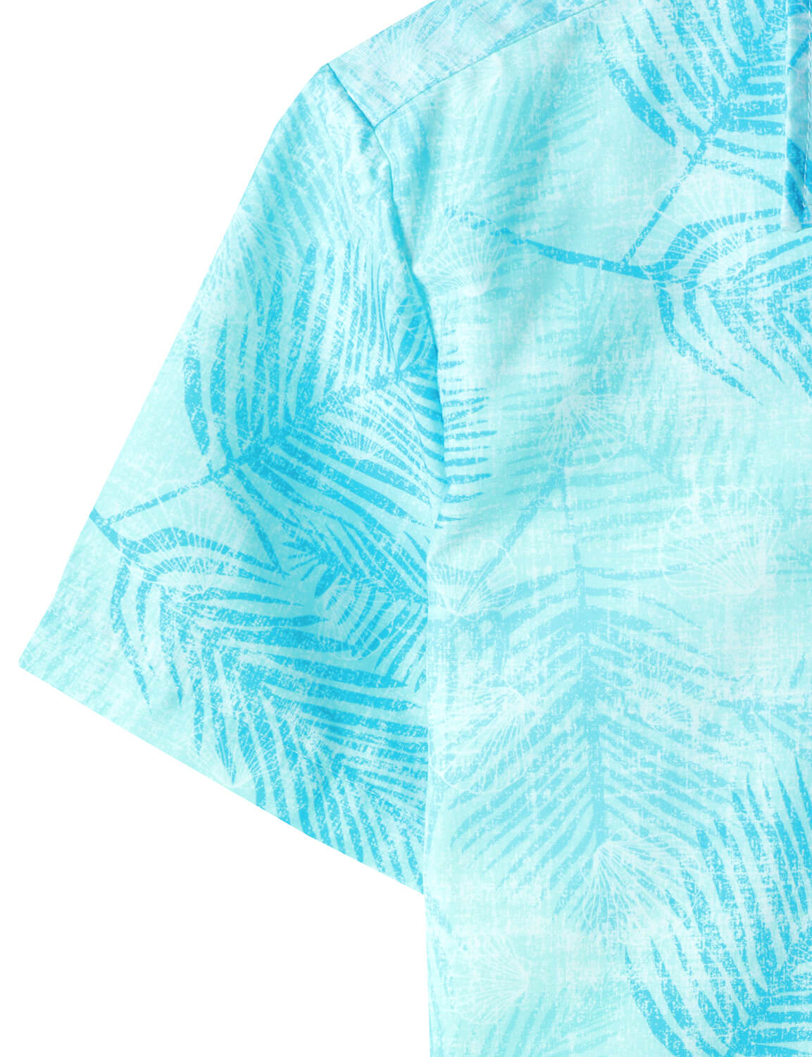 Men's Tropical Blue Leaf Vacation Short Sleeve Summer Button Up Hawaiian Shirt