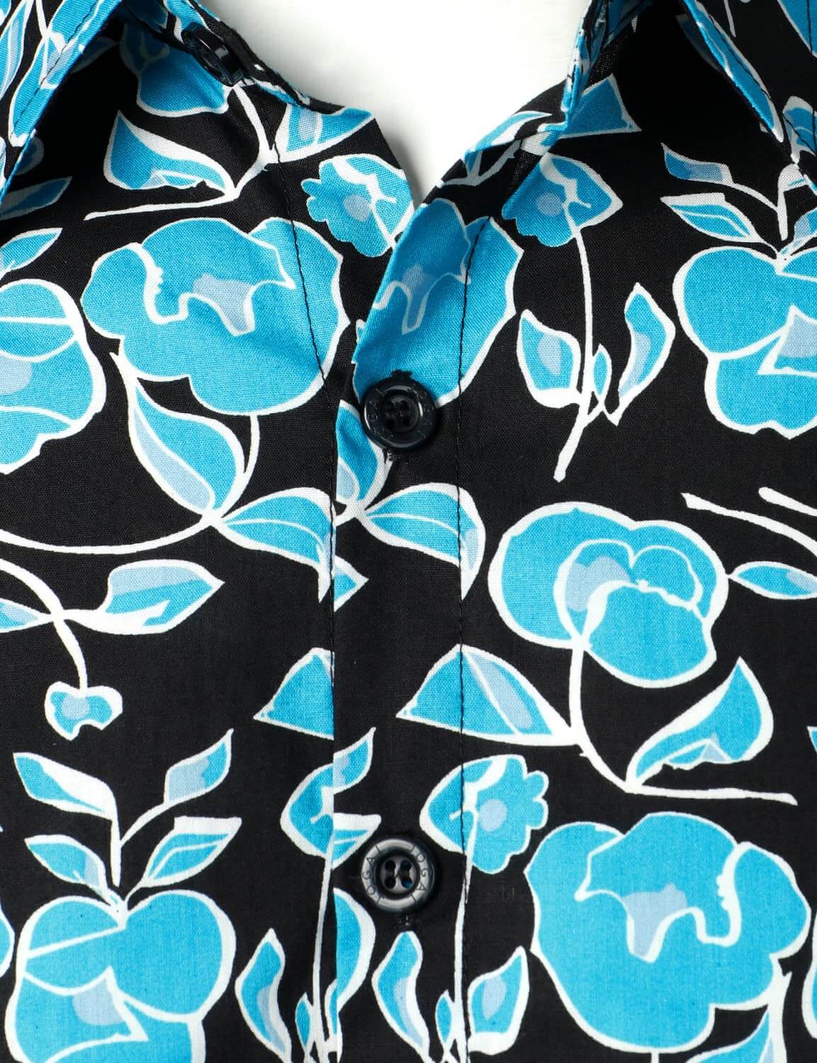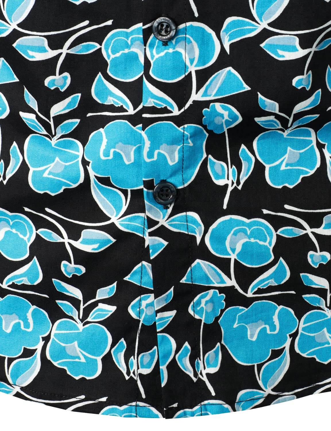 Men's Casual Floral Button Up Summer Beach Black Short Sleeve Shirt