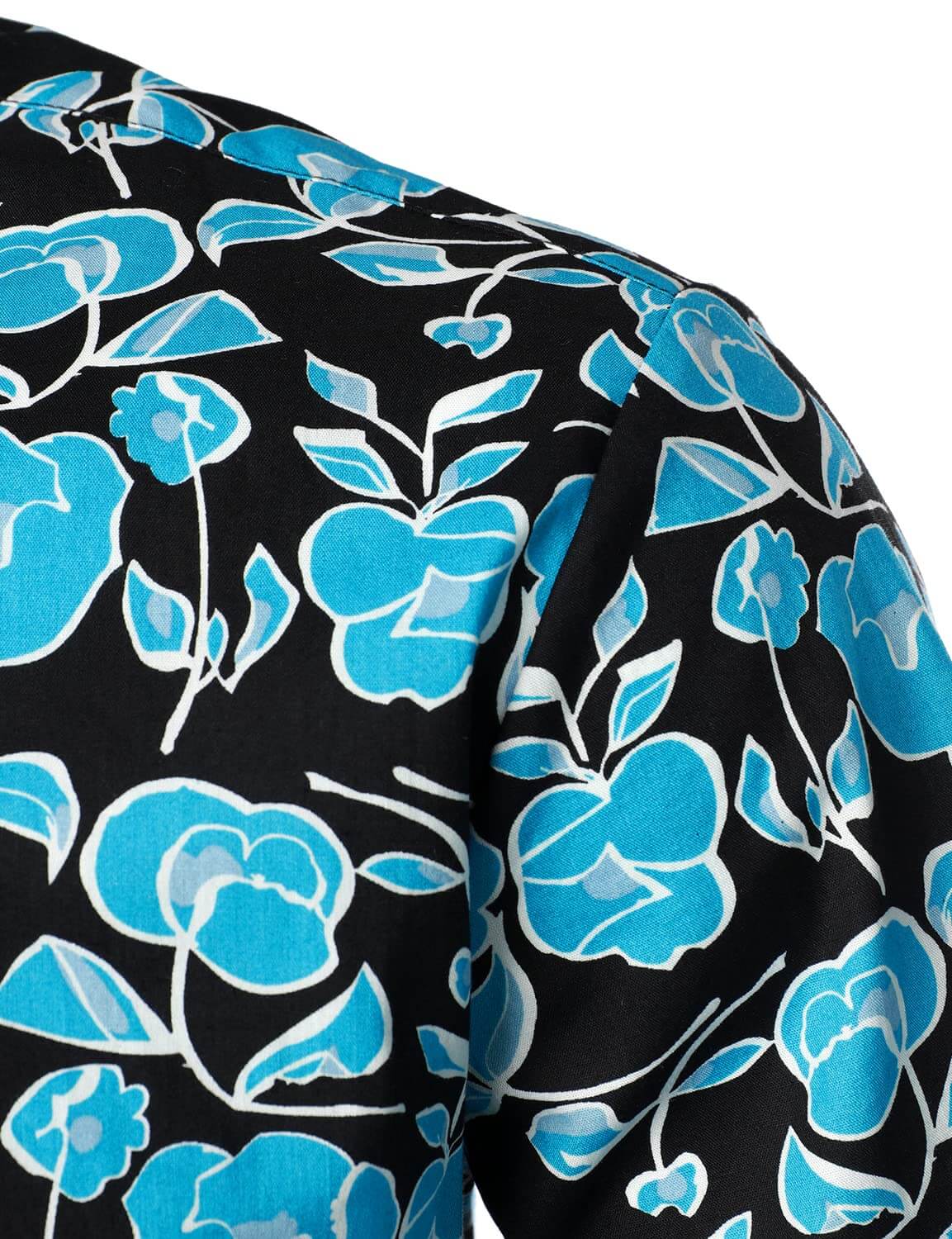 Men's Blue Floral Printed Button Up Casual Short Sleeve Shirt