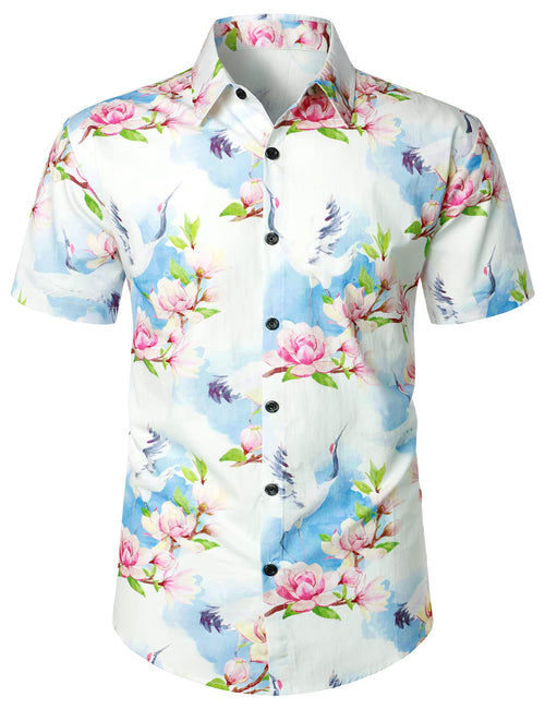 Men's Tropical Leaf Print Hawaiian Pocket Short Sleeve Shirt