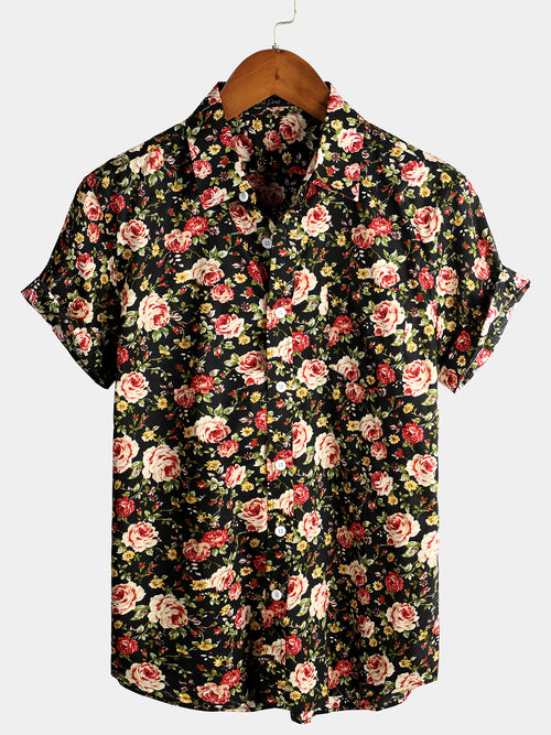 Men's Short Sleeve Rose Cotton Holiday Shirts