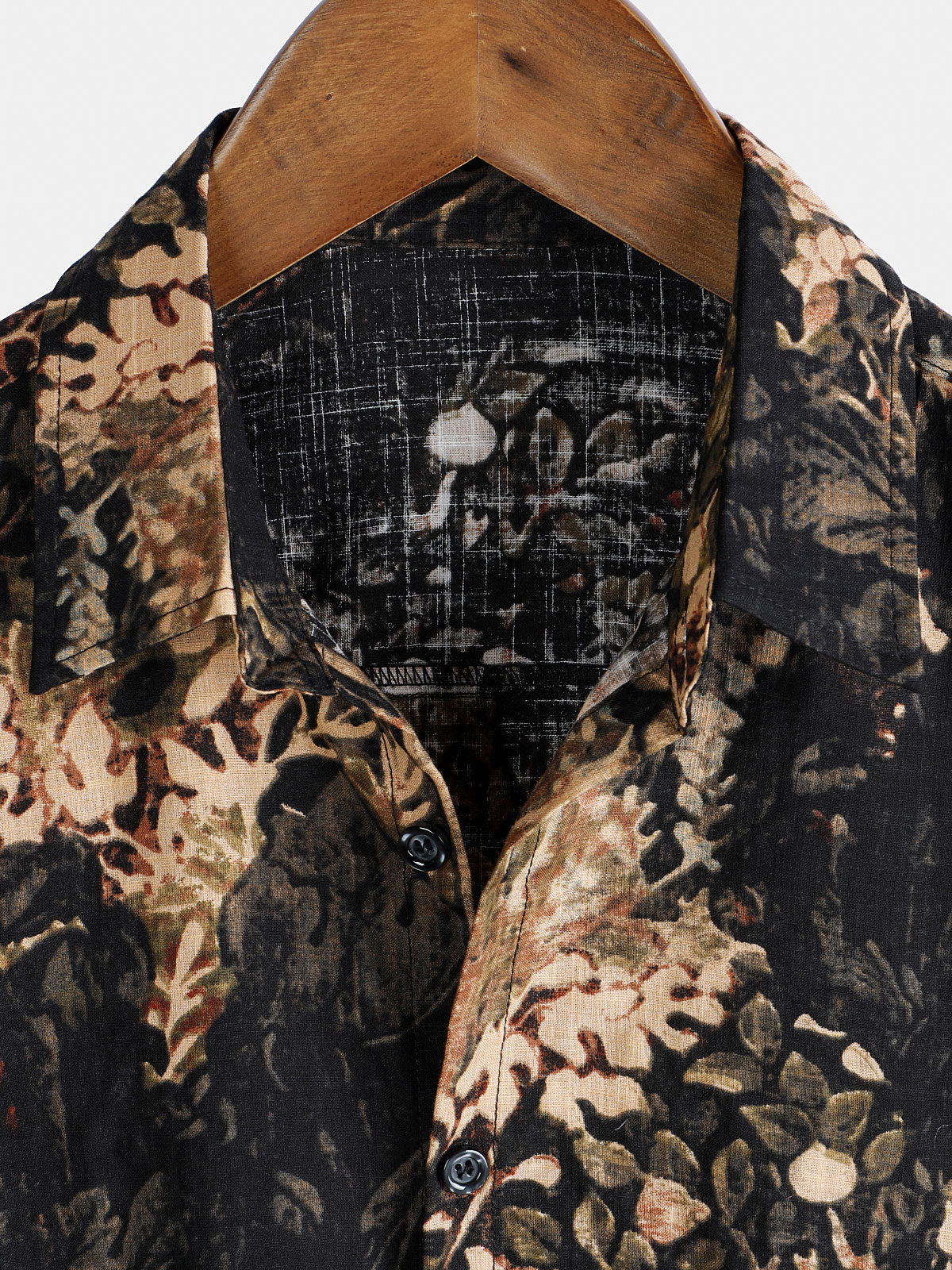 Men's Floral Print Vintage Holiday Brown Hawaiian Short Sleeve Shirt