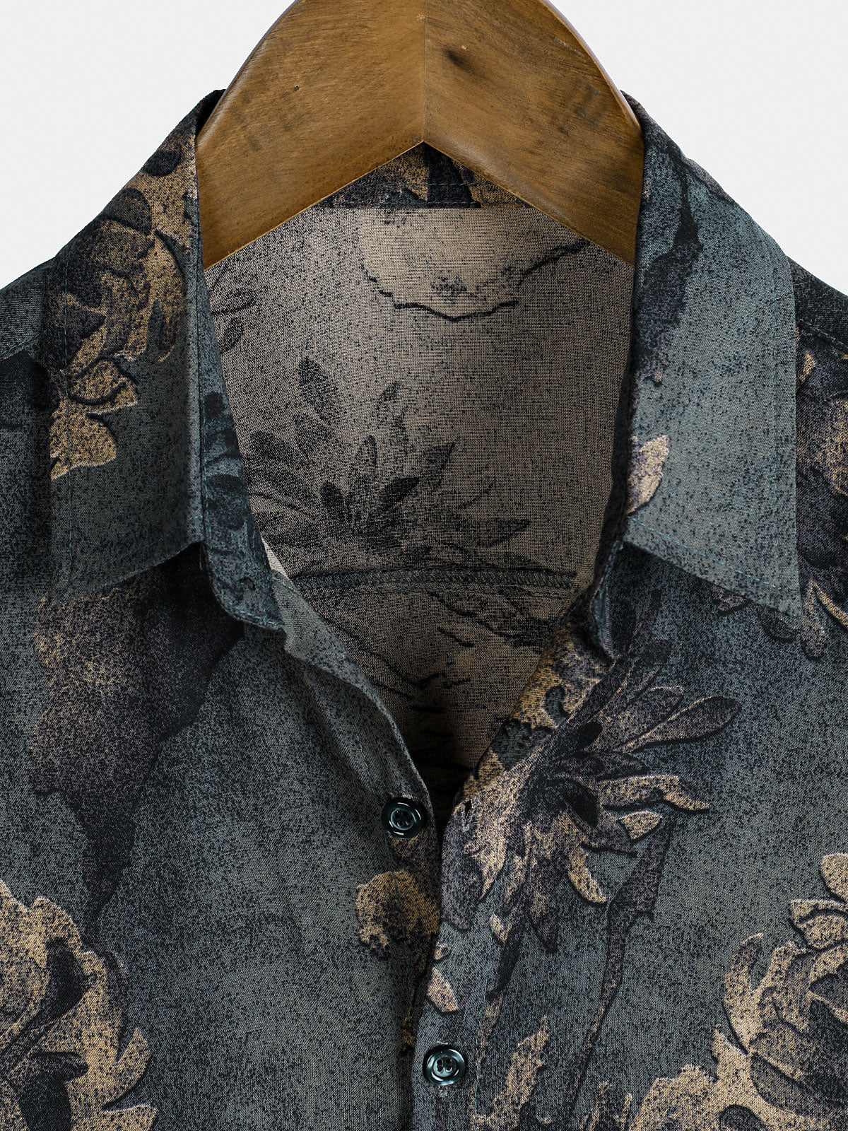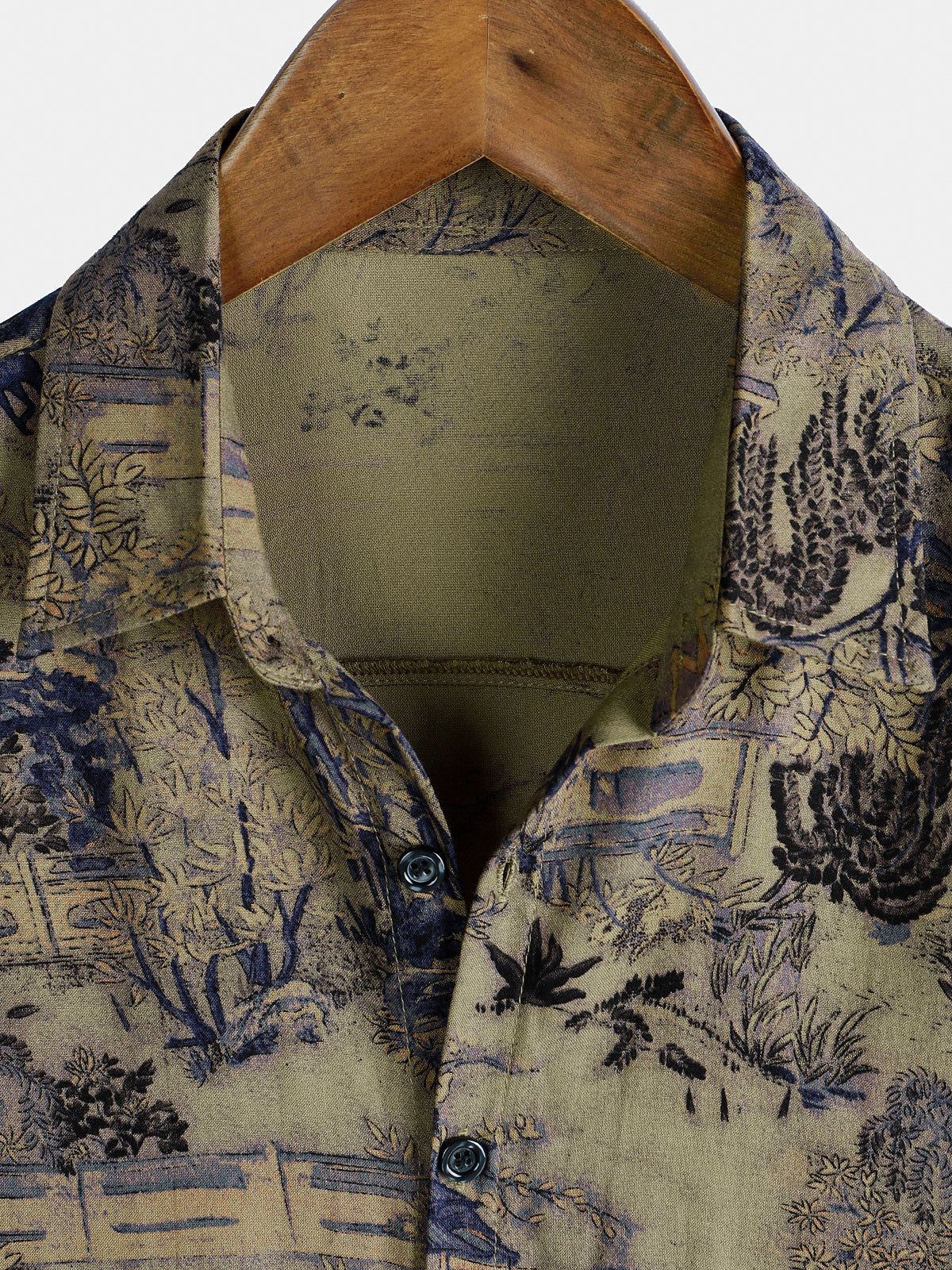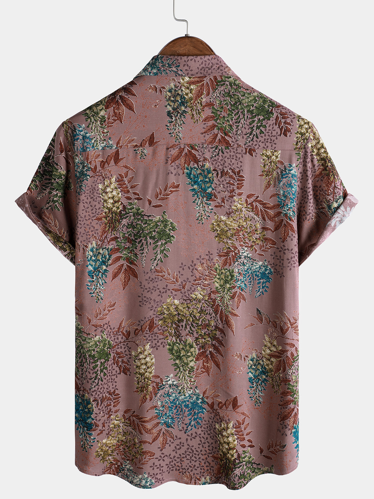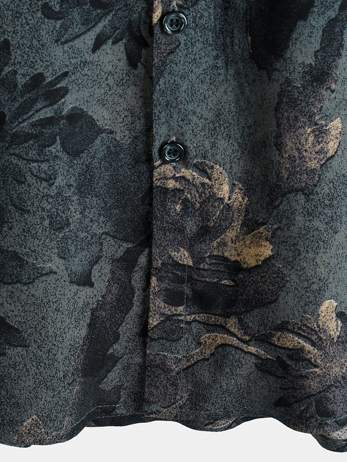 Men's Summer Retro Plant Print Button Up Short Sleeve Shirt