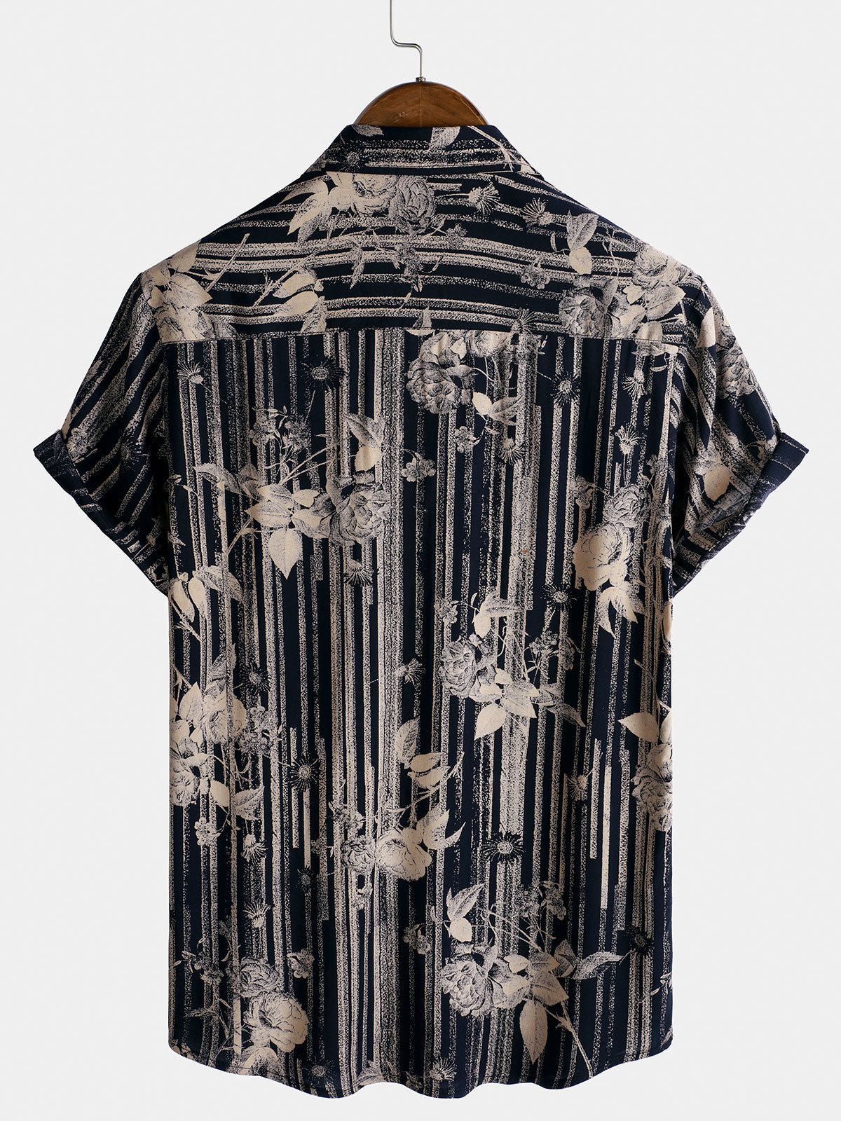 Men's Retro Navy Blue Floral Summer Short Sleeve Shirt