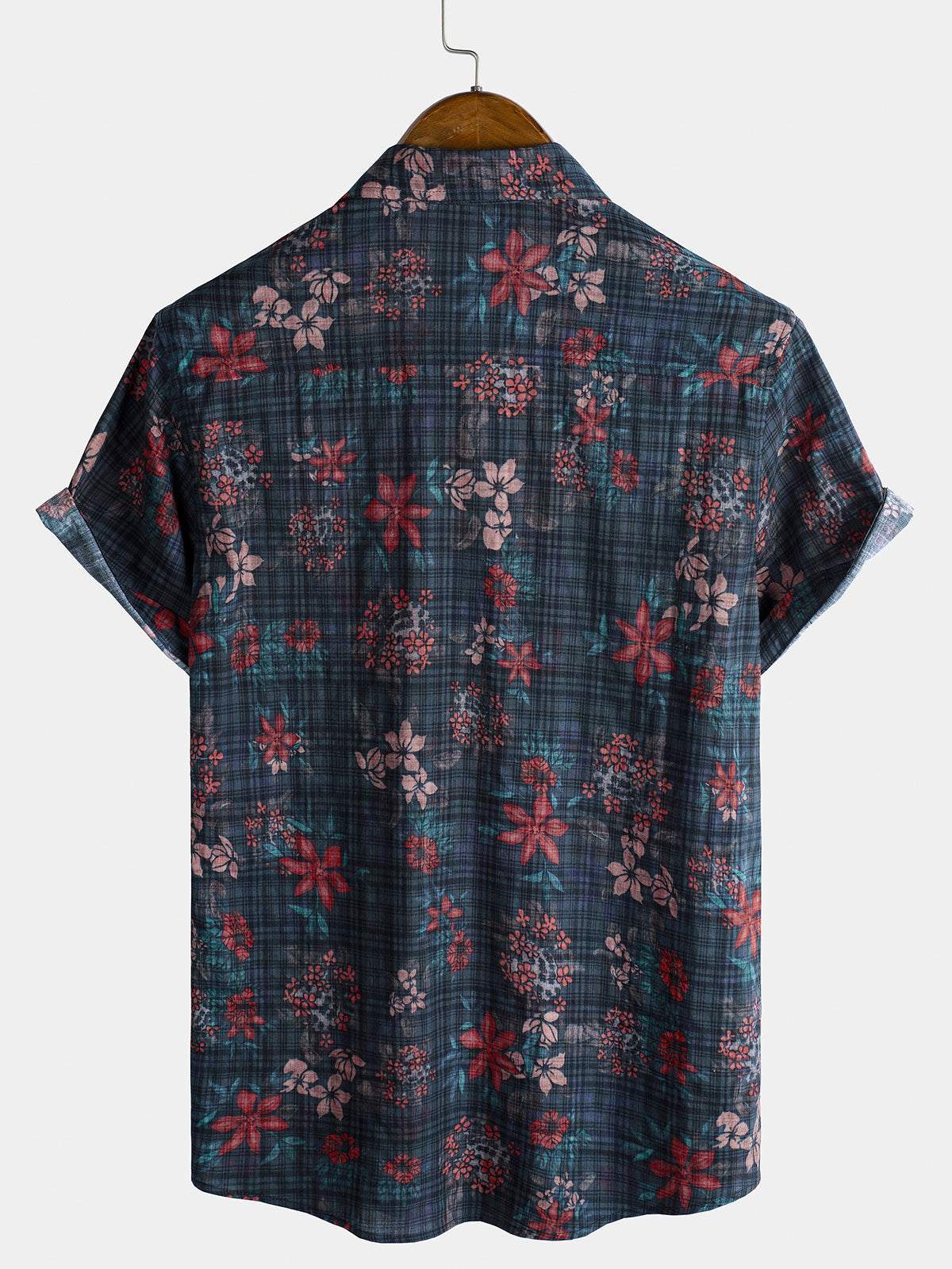 Men's Retro Flower Print Vintage Floral Holiday Cotton Short Sleeve Shirt