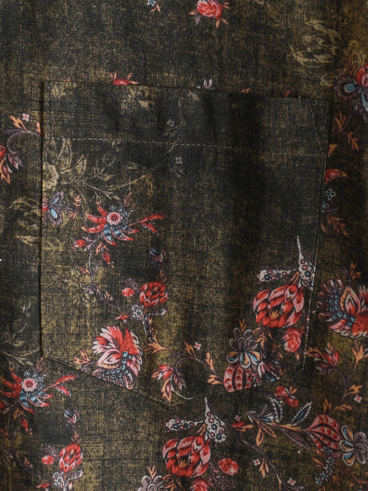 Men's Green Floral Print Pocket Short Sleeve Shirt
