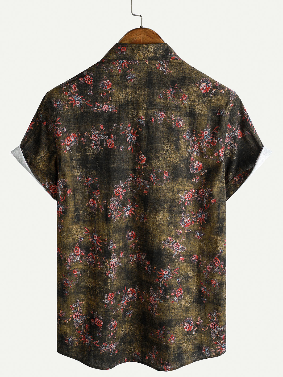 Men's Vintage Floral Cotton Breathable Short Sleeve Button Up Shirt
