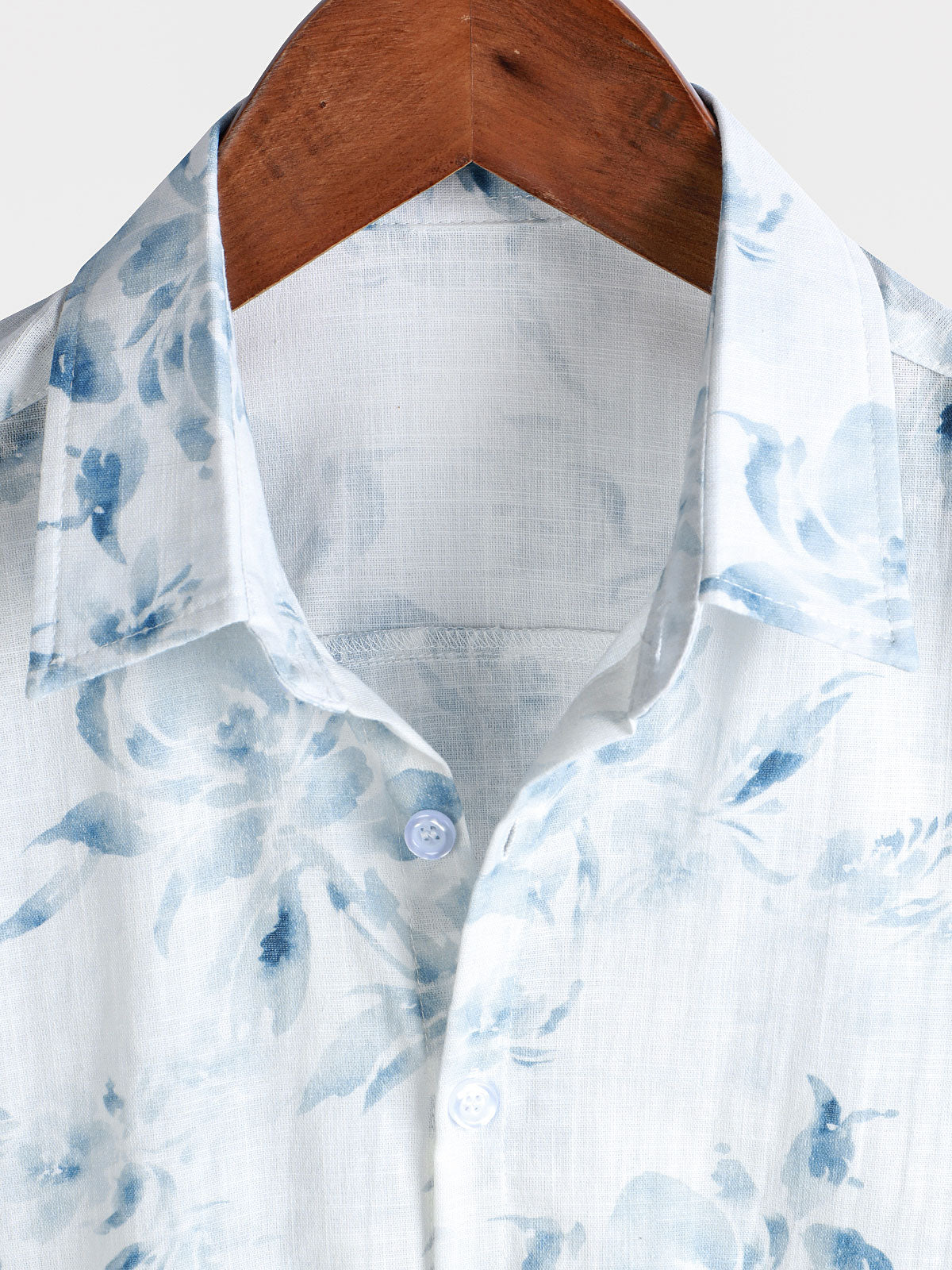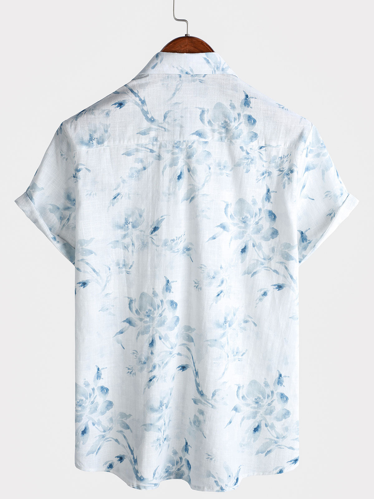 Men's Blue Flower Print Summer Holiday Cotton Short Sleeve Shirt