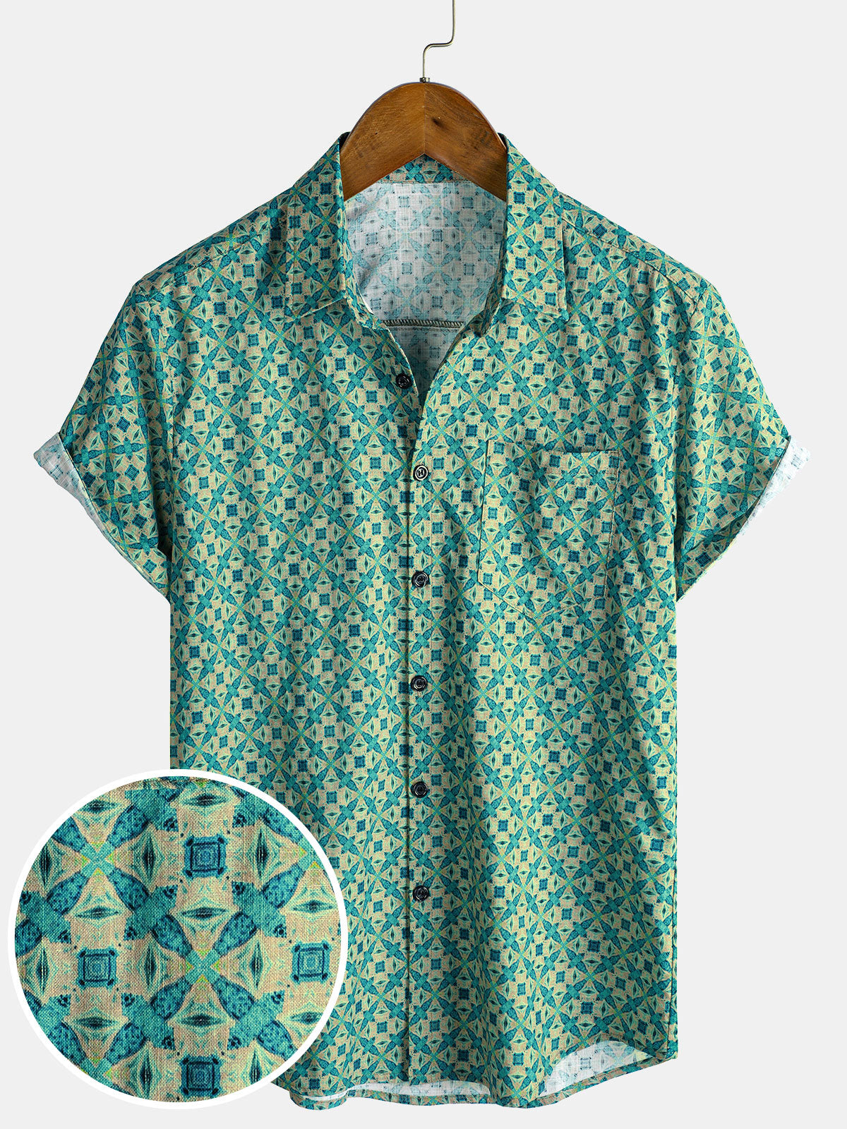 Men's Casual Retro Summer Beach Cotton Short Sleeve Shirt