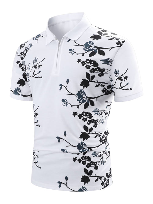 Men's Blue Floral Print Retro Short Sleeve Shirt