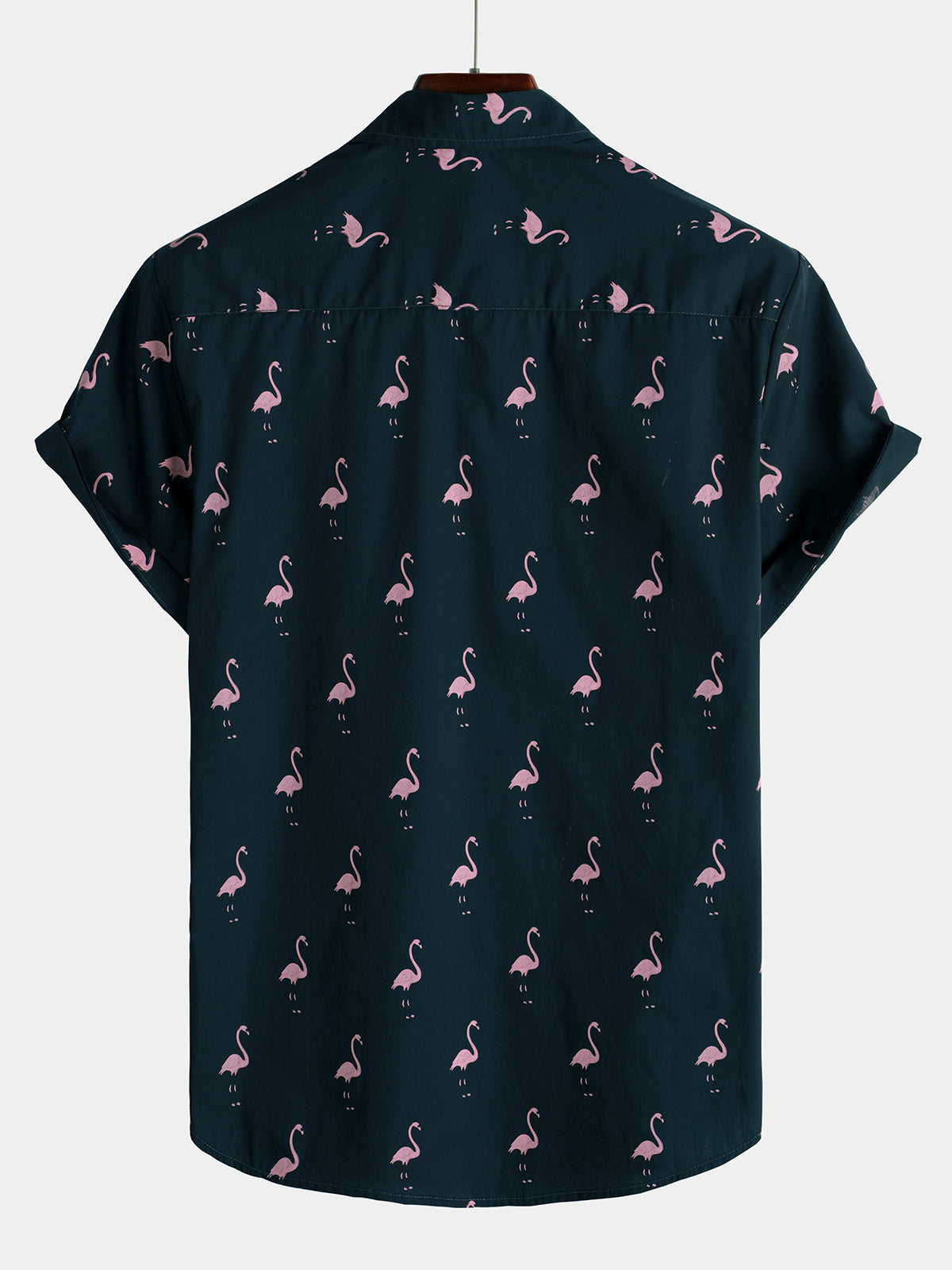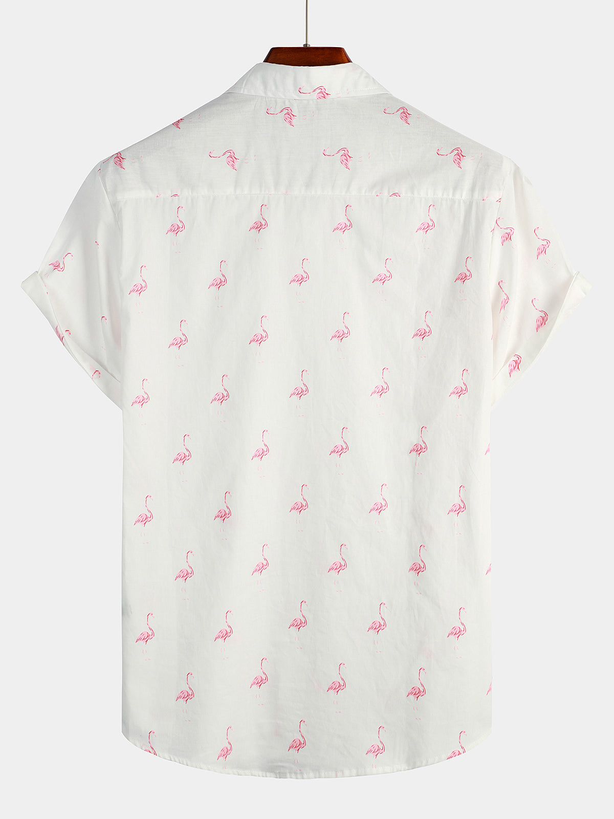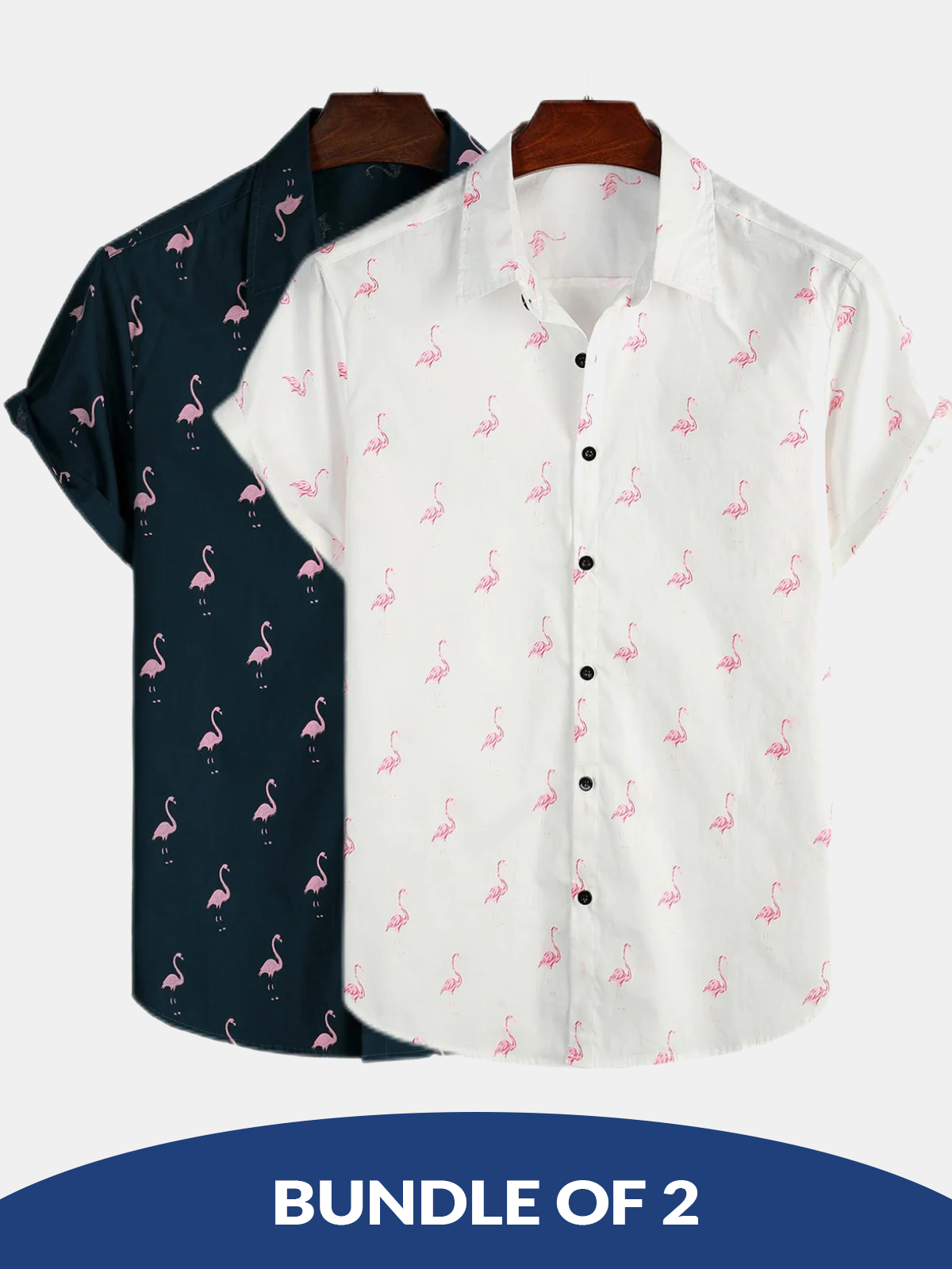 Bundle Of 2 | Men's Pink Flamingo Print Short Sleeve Button Up Shirts