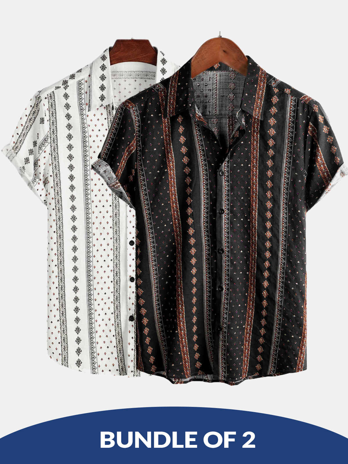 Bundle Of 2 | Men's Black & White Retro Button Up Short Sleeve Cotton Shirt