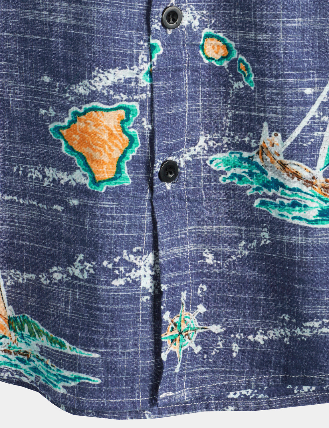 Men's Cotton Navy Blue Hawaiian Islands Cruise Beach Button Up Pocket Summer Short Sleeve Aloha Shirt