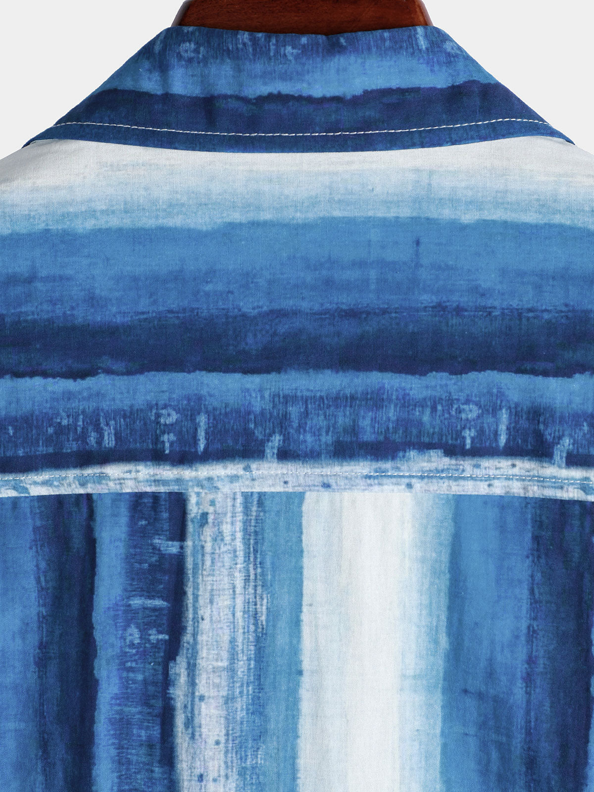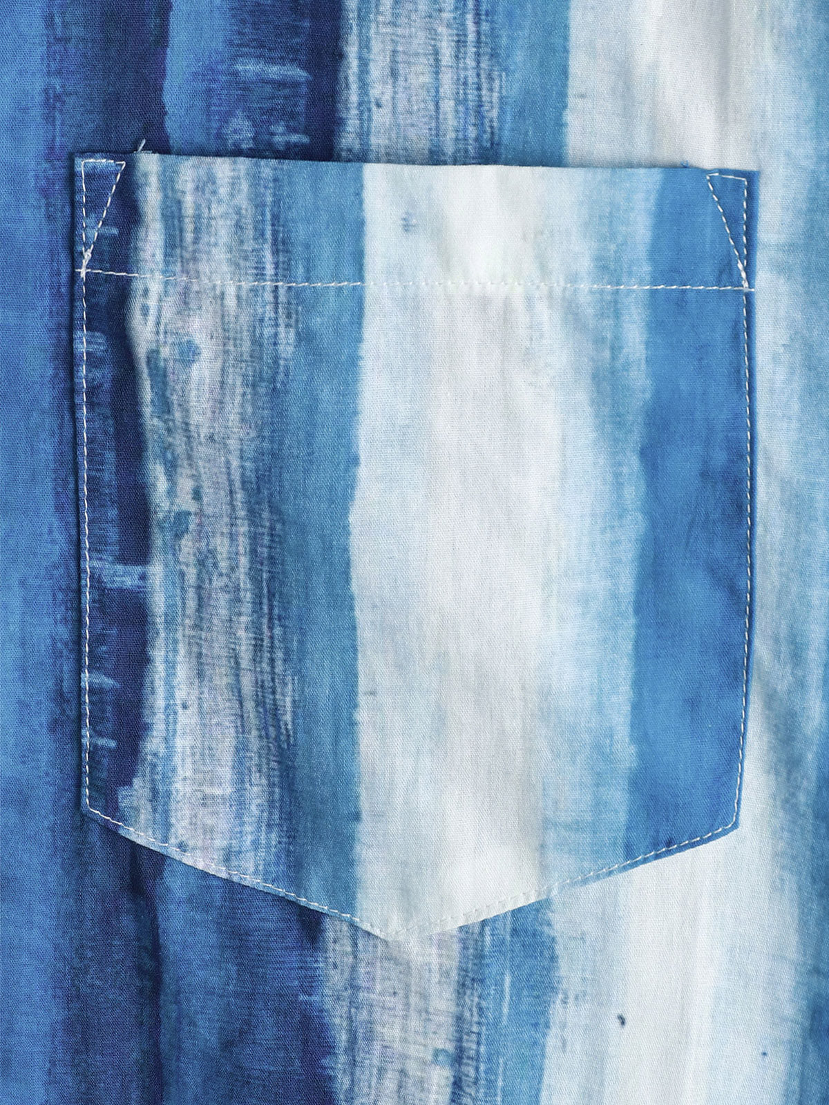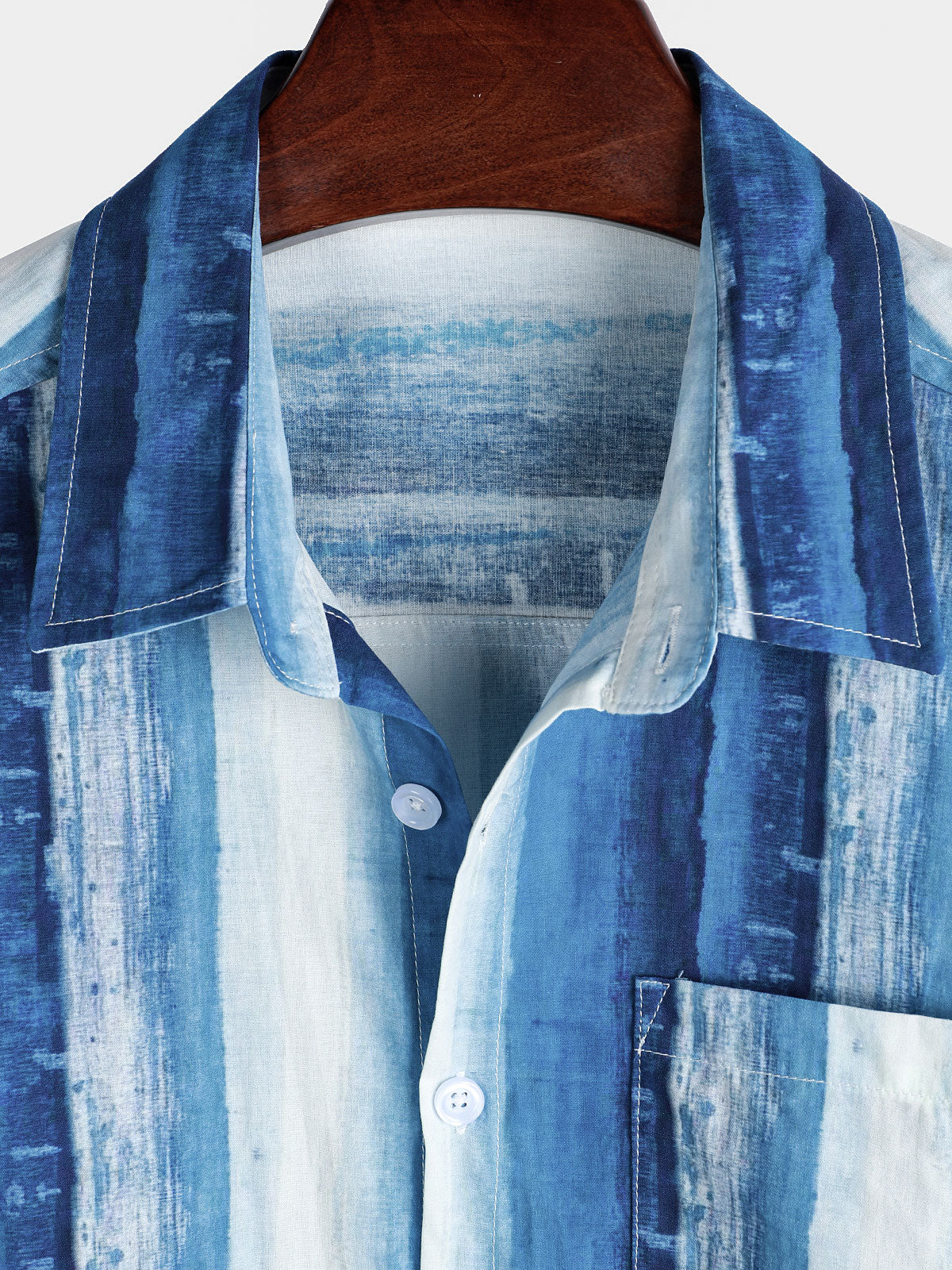 Men's Blue Striped Art Breathable Pocket Short Sleeve Shirt