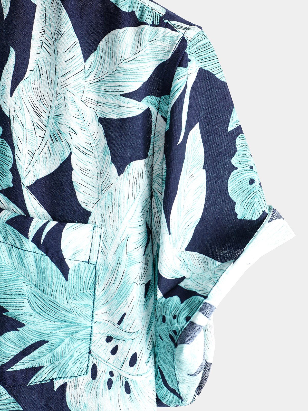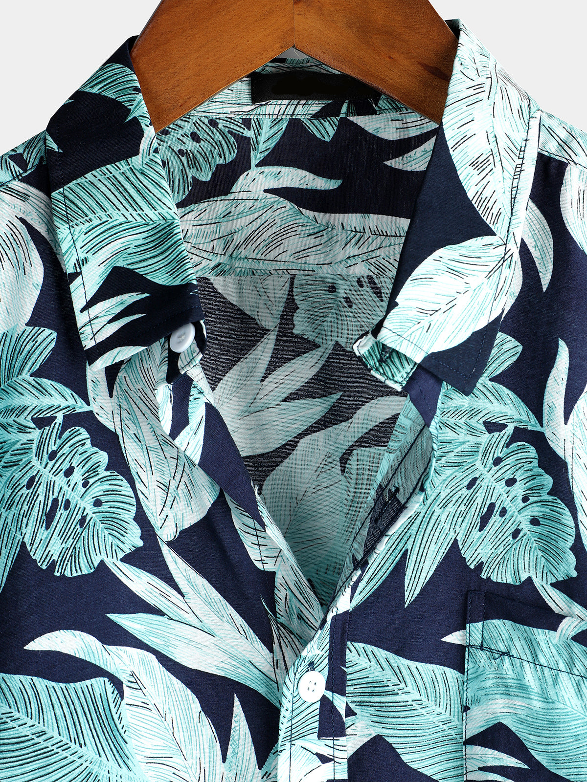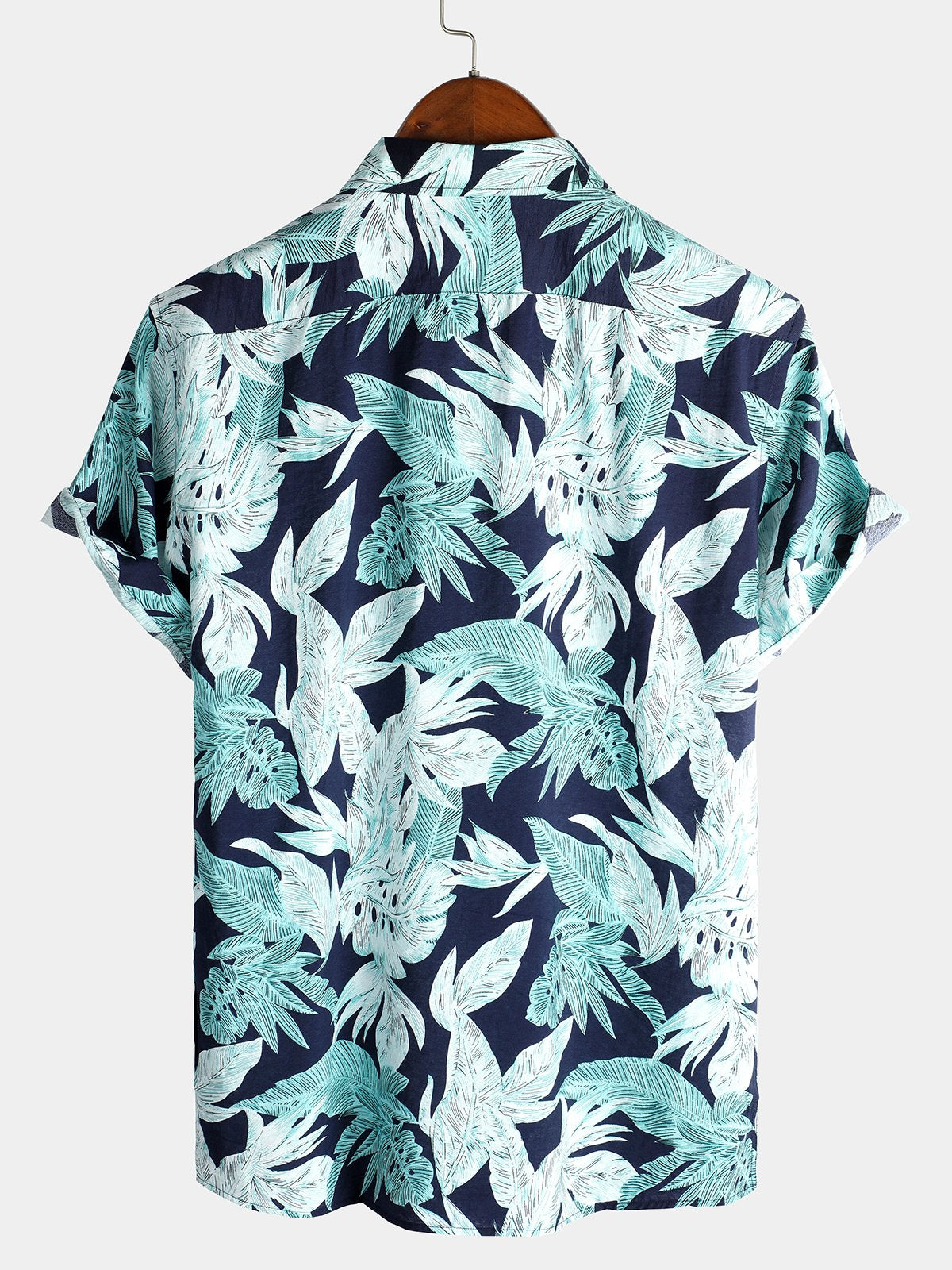 Men's Cotton Blue Floral Holiday Short Sleeve Shirt