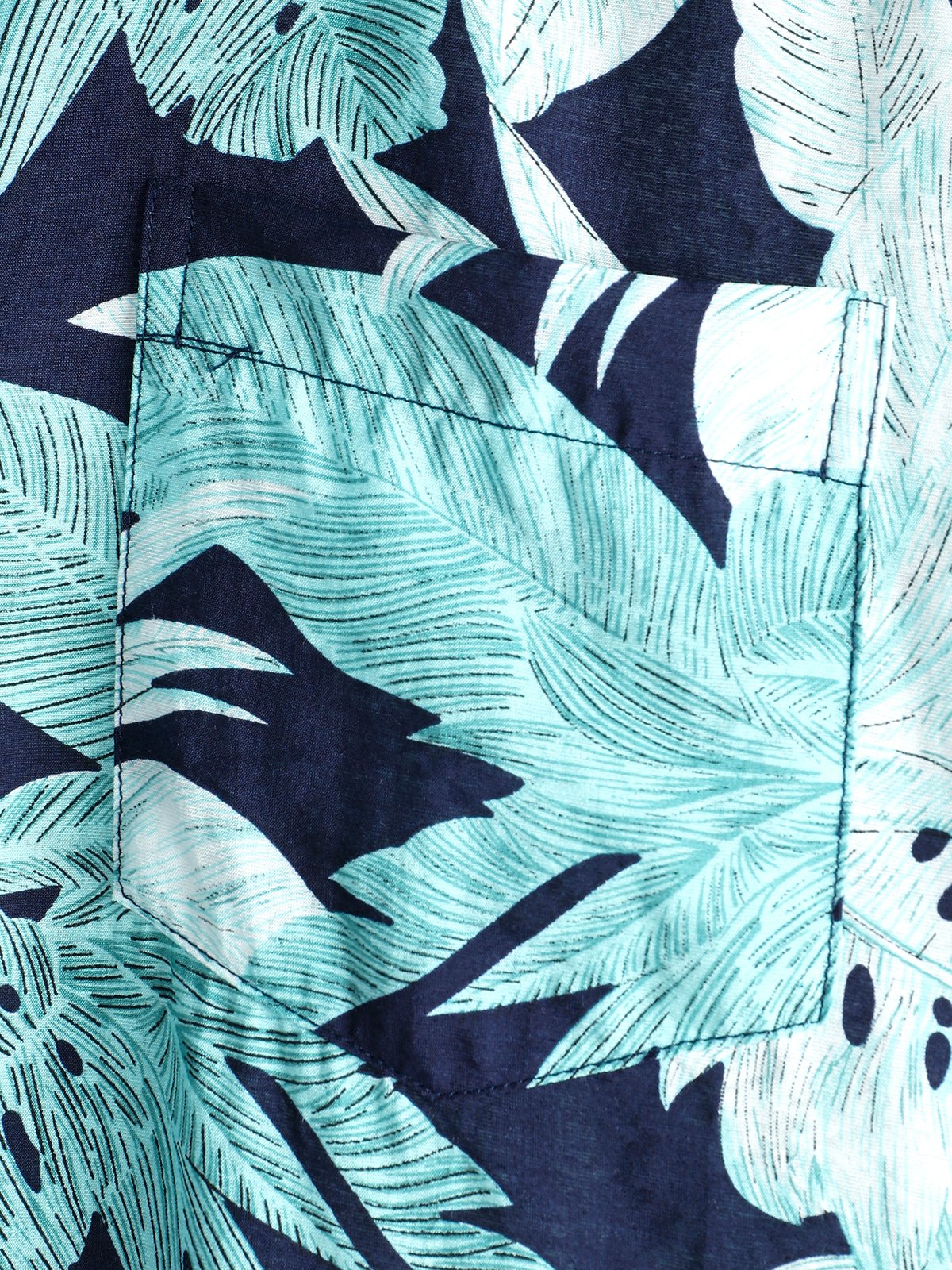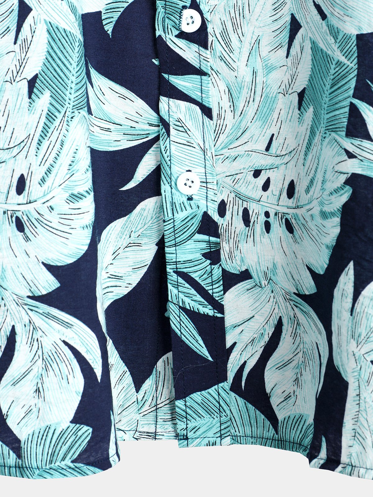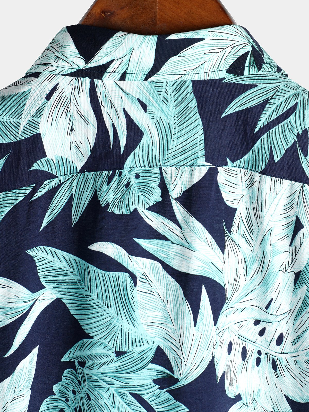 Men's Cotton Blue Floral Holiday Short Sleeve Shirt