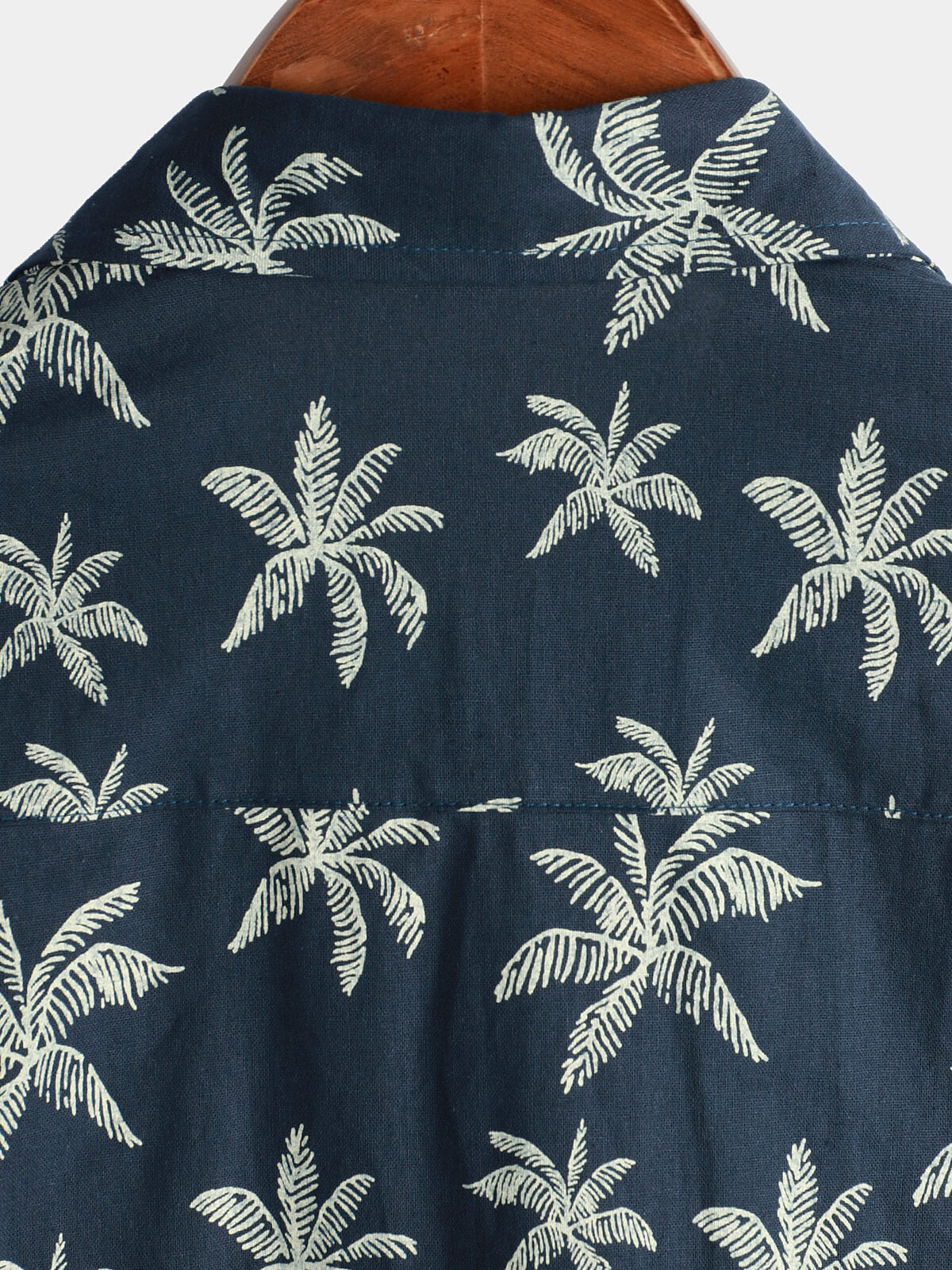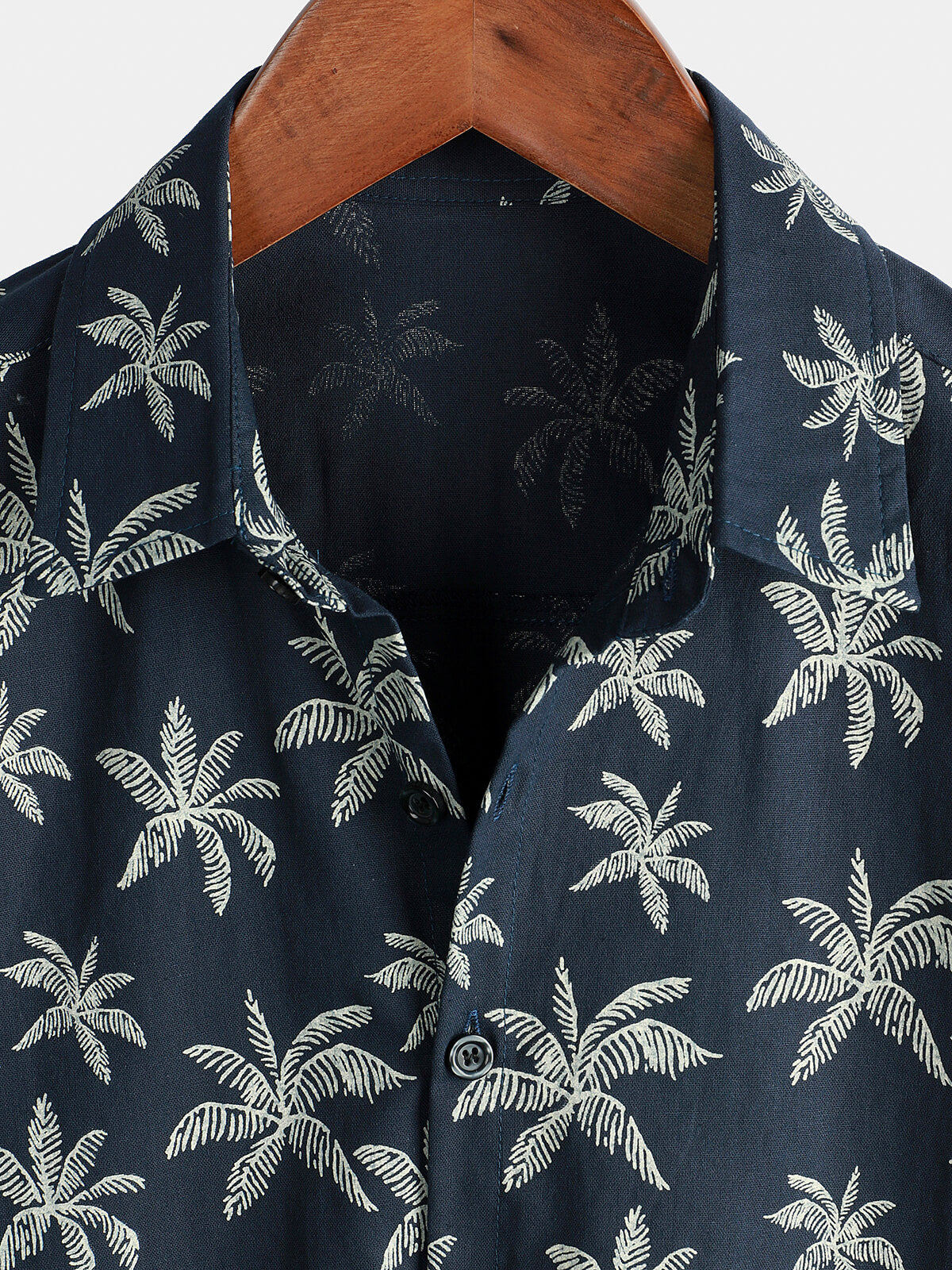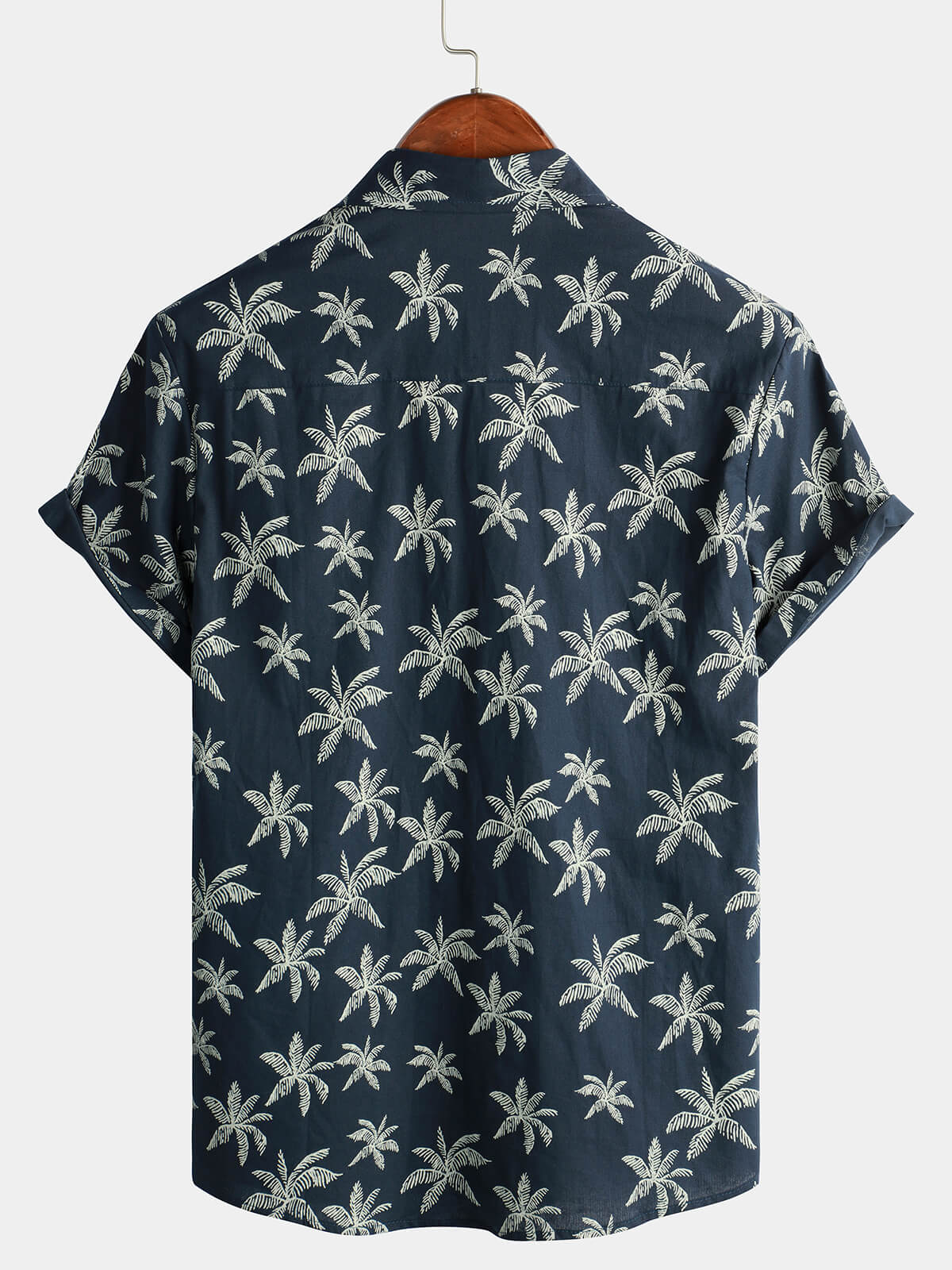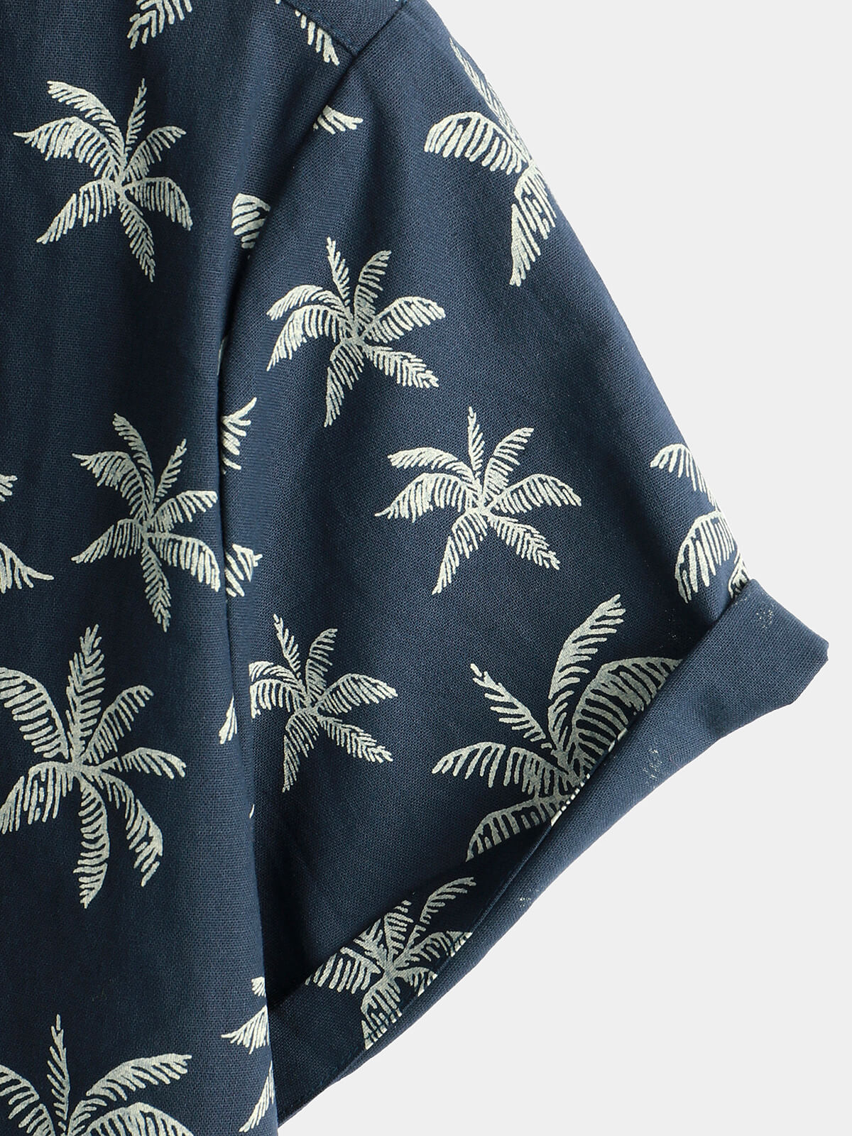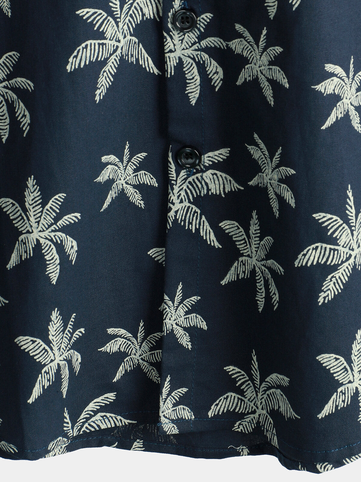 Men's Palm Tree Print Cotton Navy Blue Button Up Short Sleeve Hawaiian Shirt