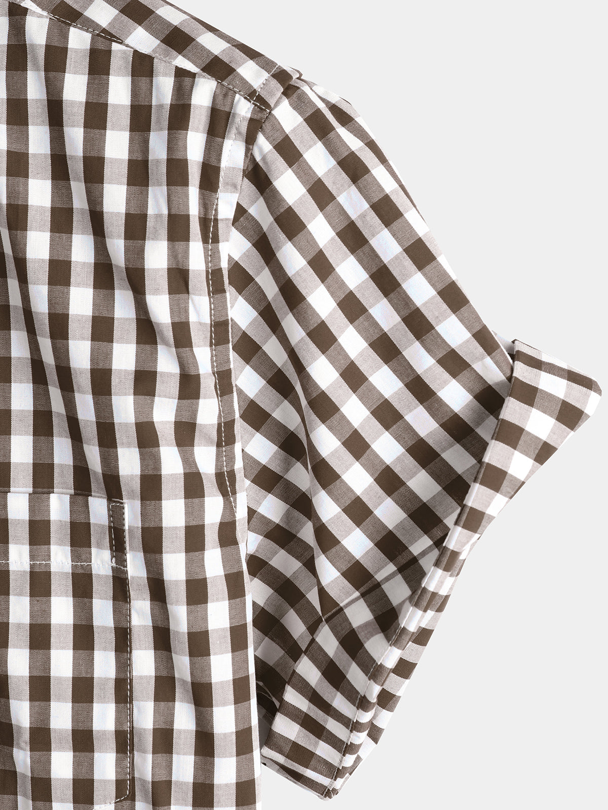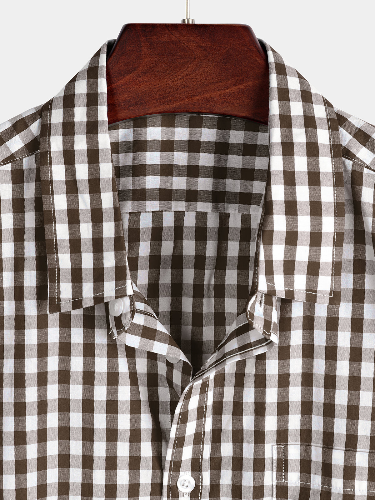 Men's Casual Solid Color Plaid Cotton Pocket Shirt