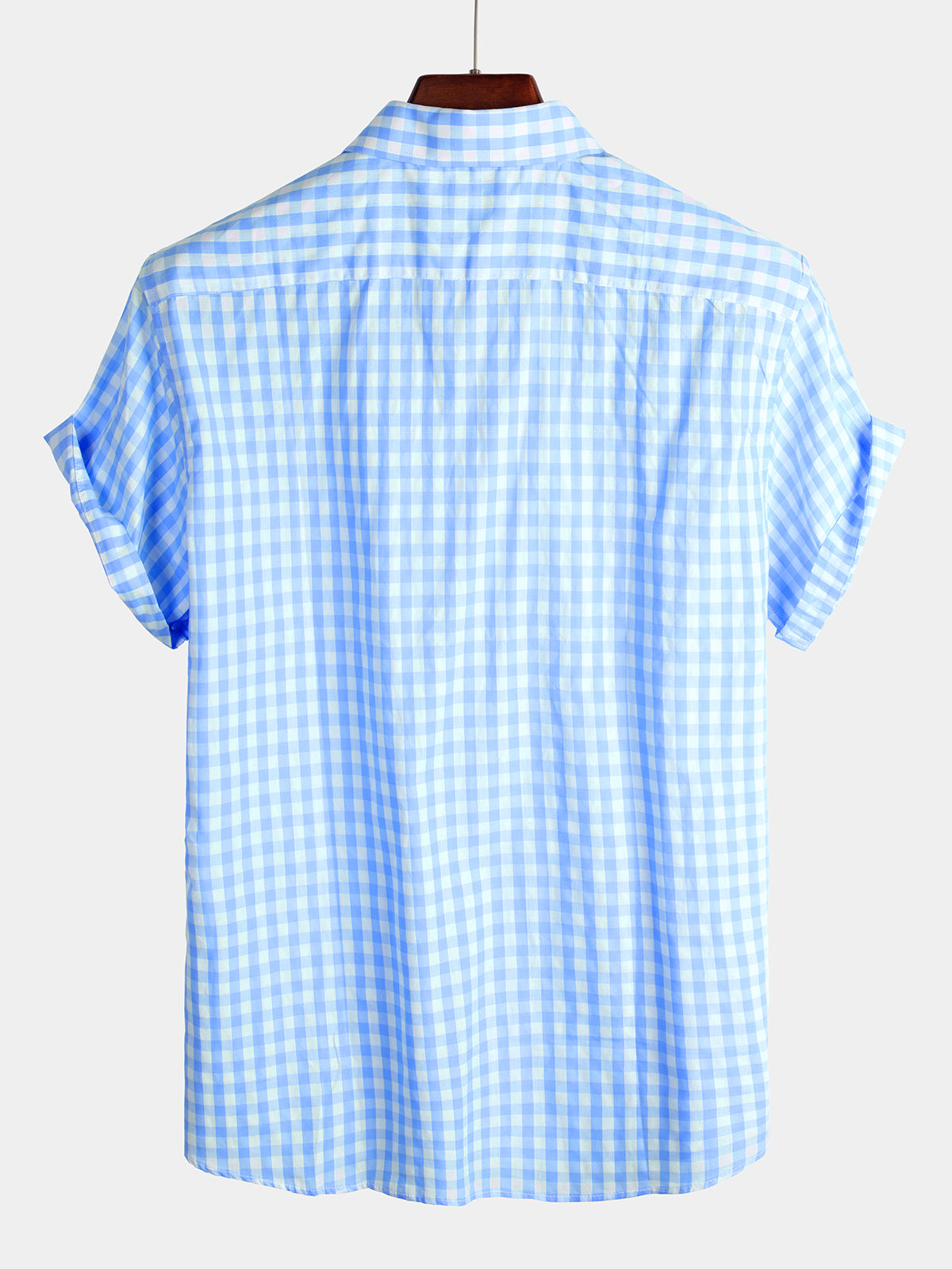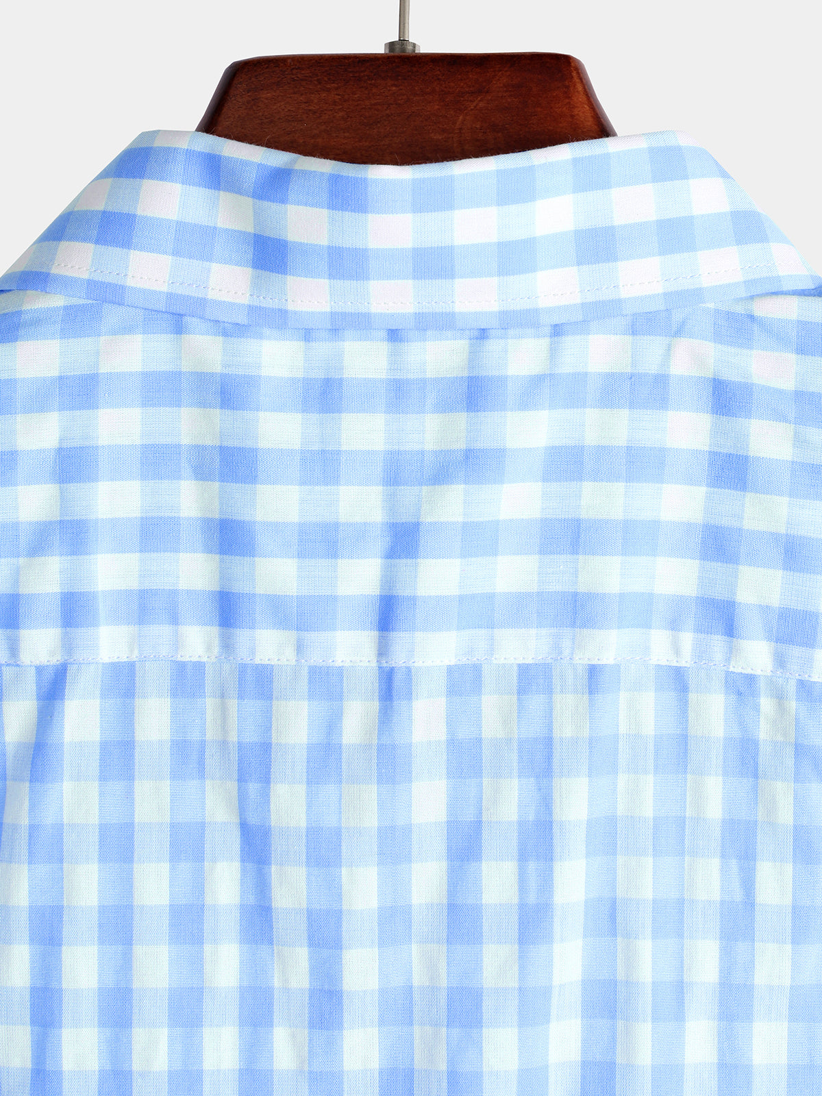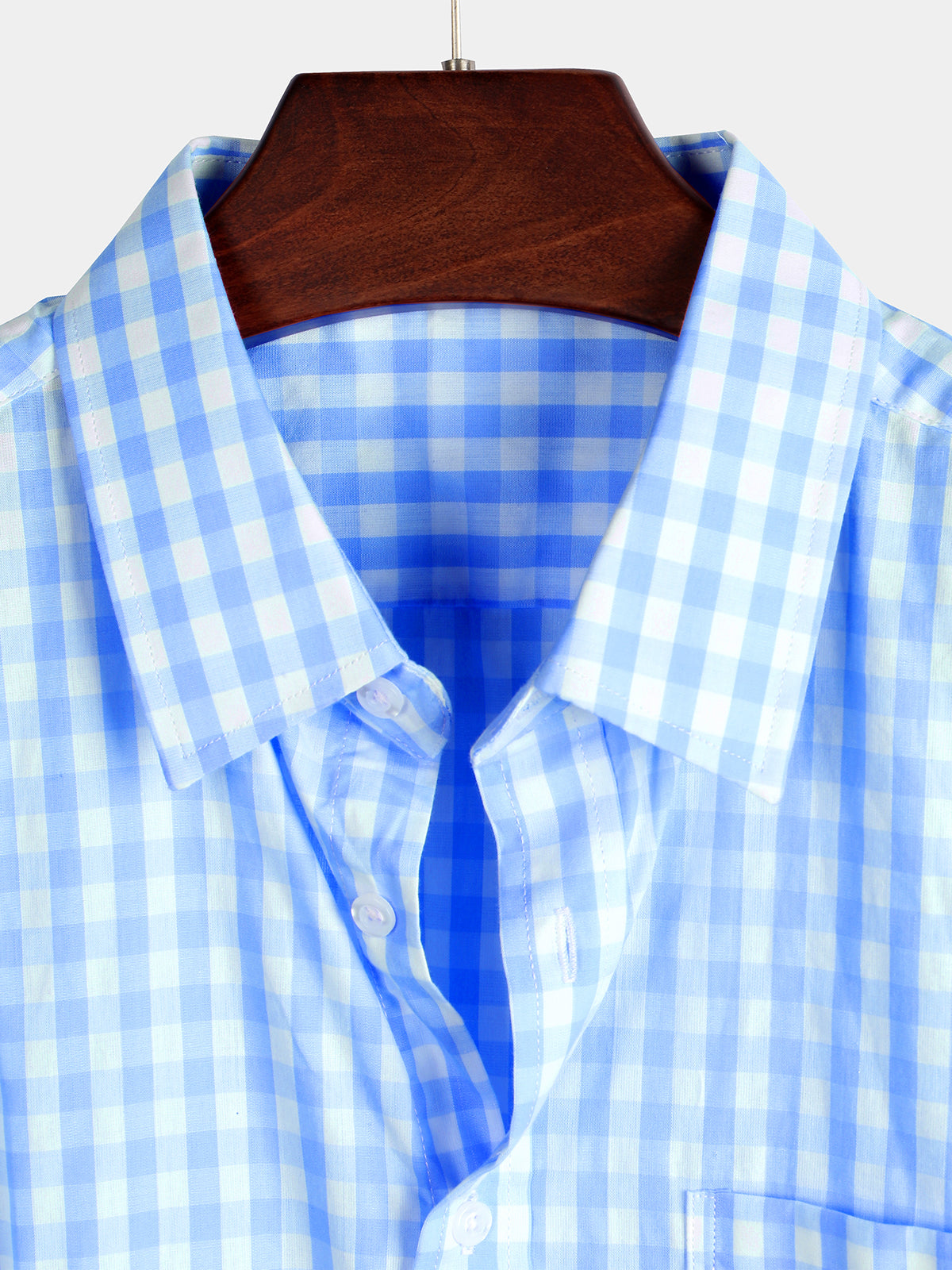Men's Casual Solid Color Plaid Cotton Pocket Shirt