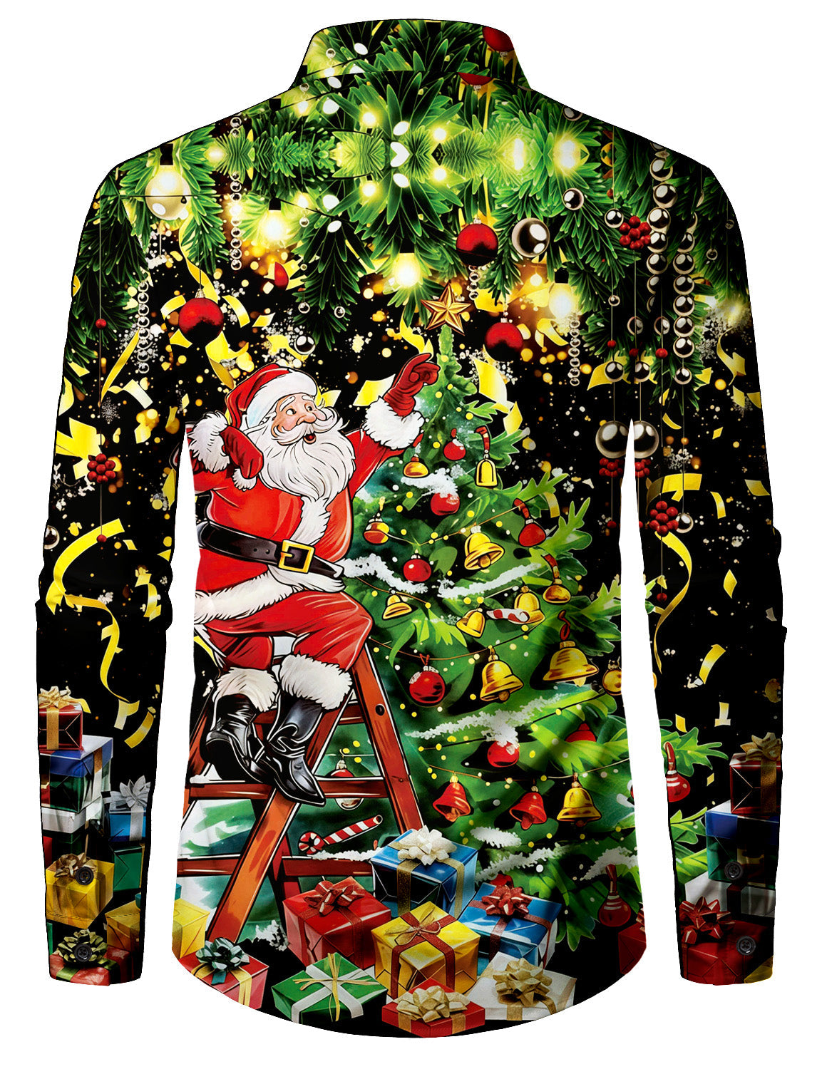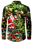Men's Christmas Santa Claus Print Long Sleeve Holiday Shirt