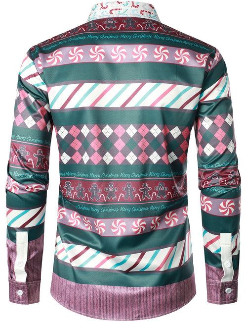 Men's Casual Holiday Wine Glass Print Button Up Long Sleeve Cotton Party Shirt