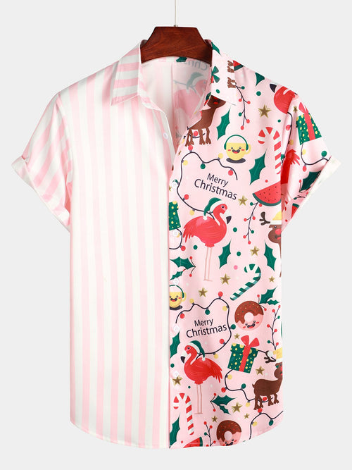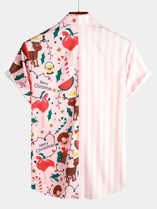 Men's Tropical Pineapple Coconut Tree Print Holiday Short Sleeve Shirt