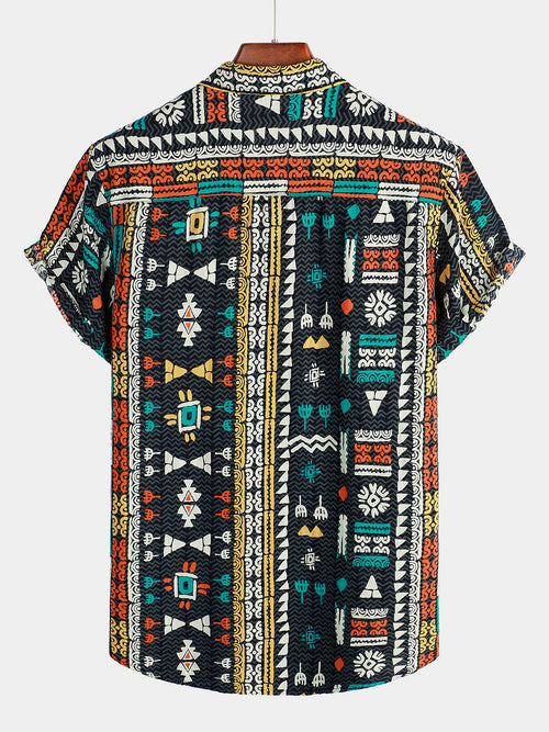 Men's Retro Holiday Summer Breathable Casual Short Sleeve Button Up Shirt