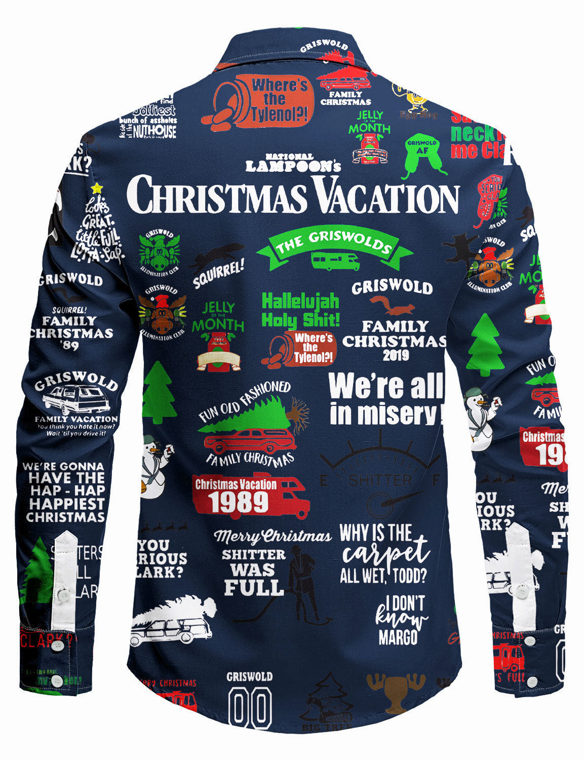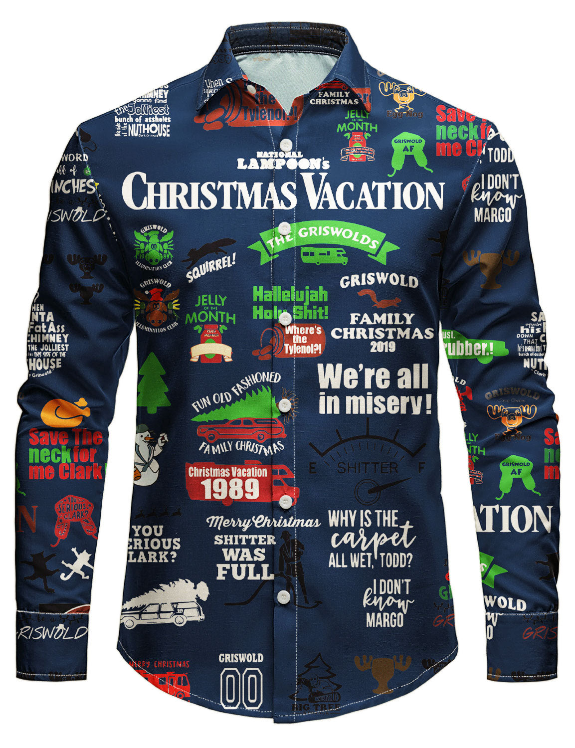 Men's Christmas Blue Vacation Funny Print Long Sleeve Button Shirt