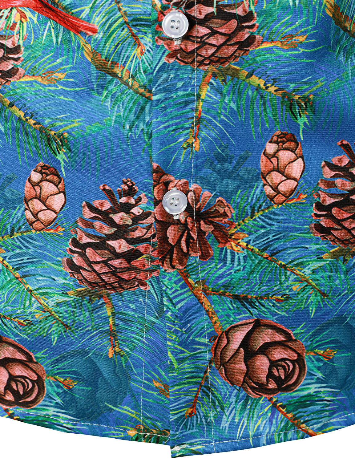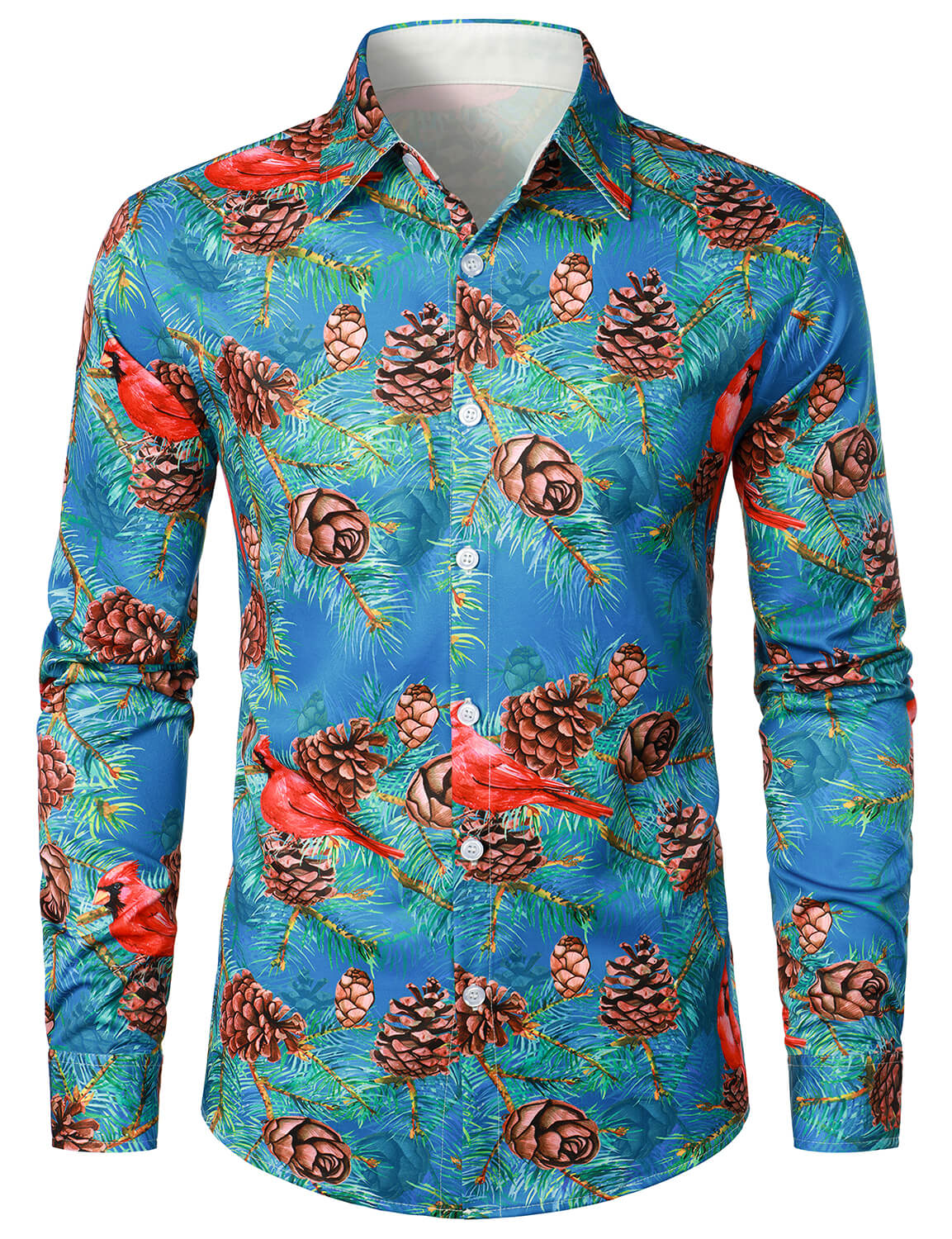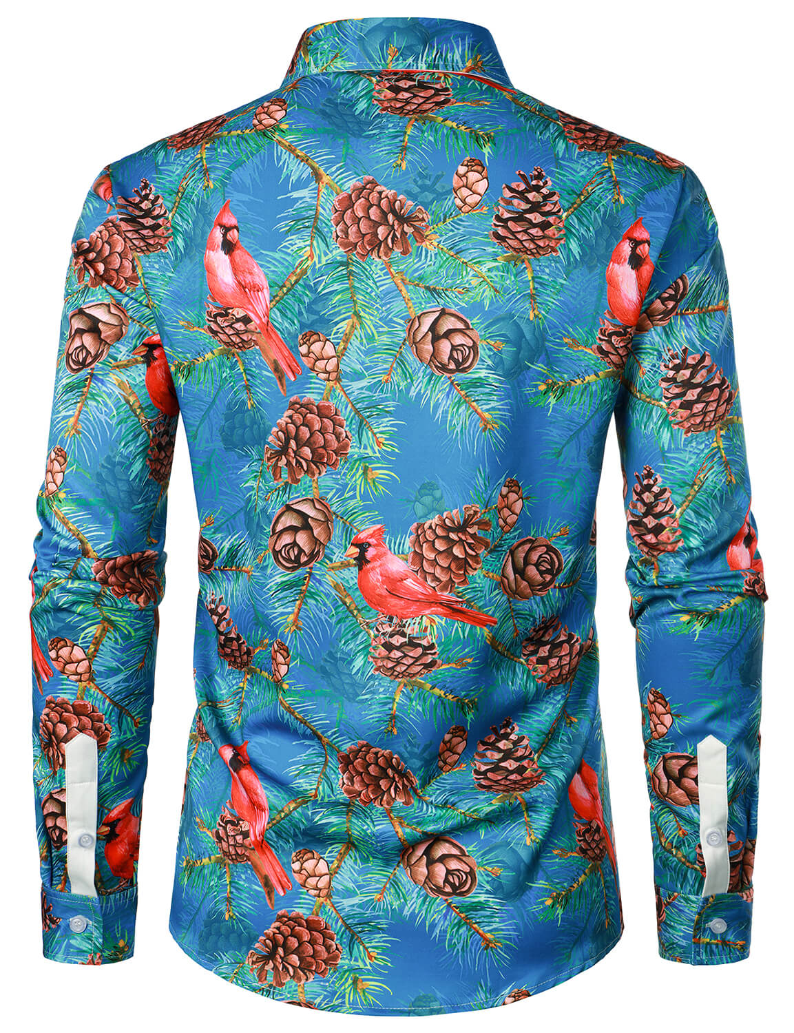 Men's Christmas Cardinals Birds Print Button Up Xmas Day Long Sleeve Dress Shirt