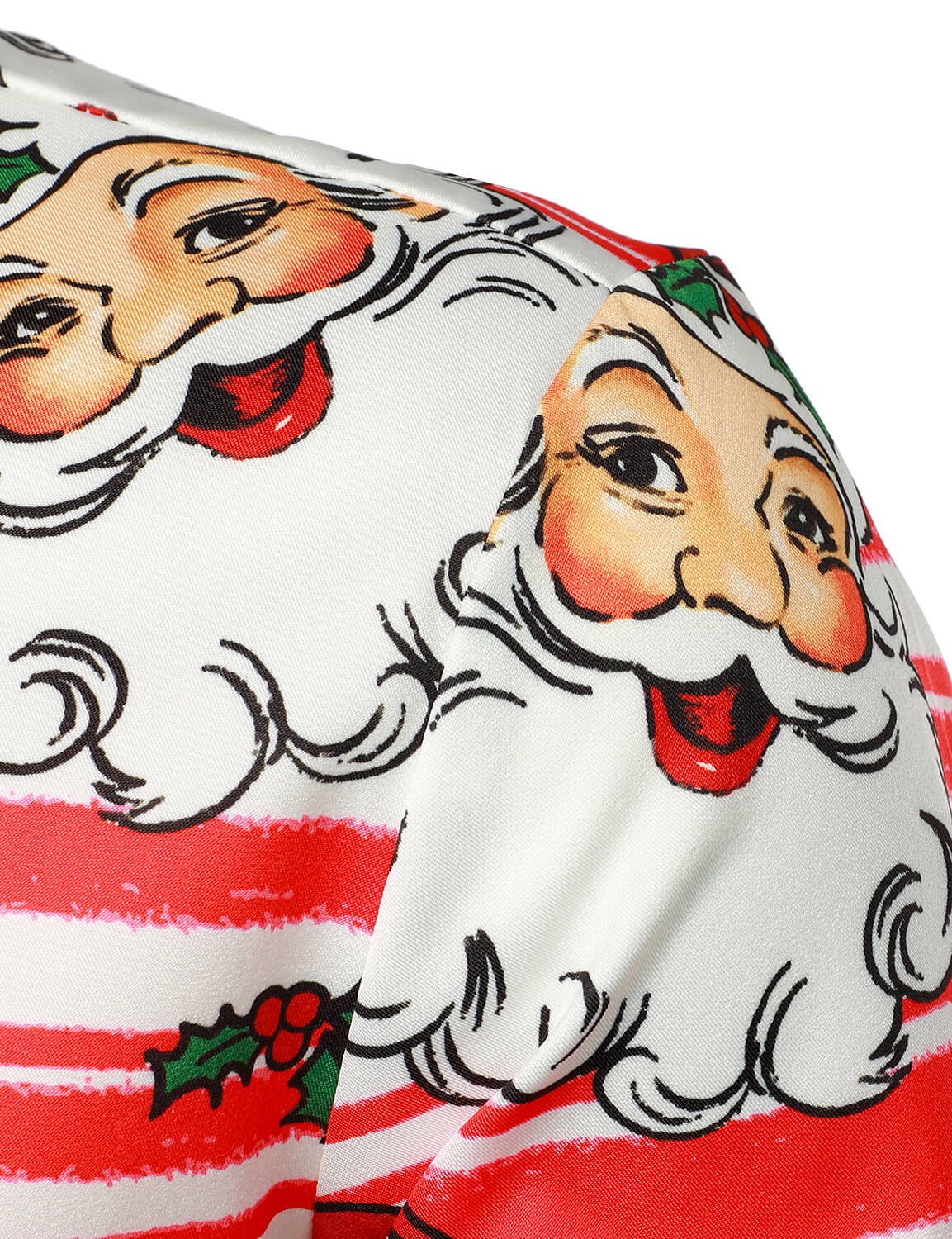 Men's Christmas Santa Claus Holiday Button Up Red Striped Long Sleeve Shirt