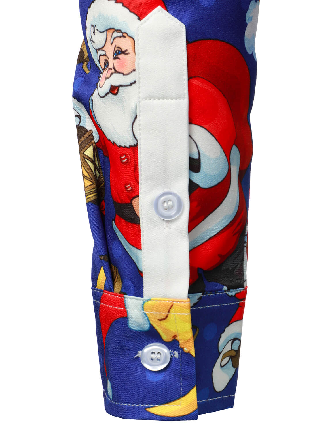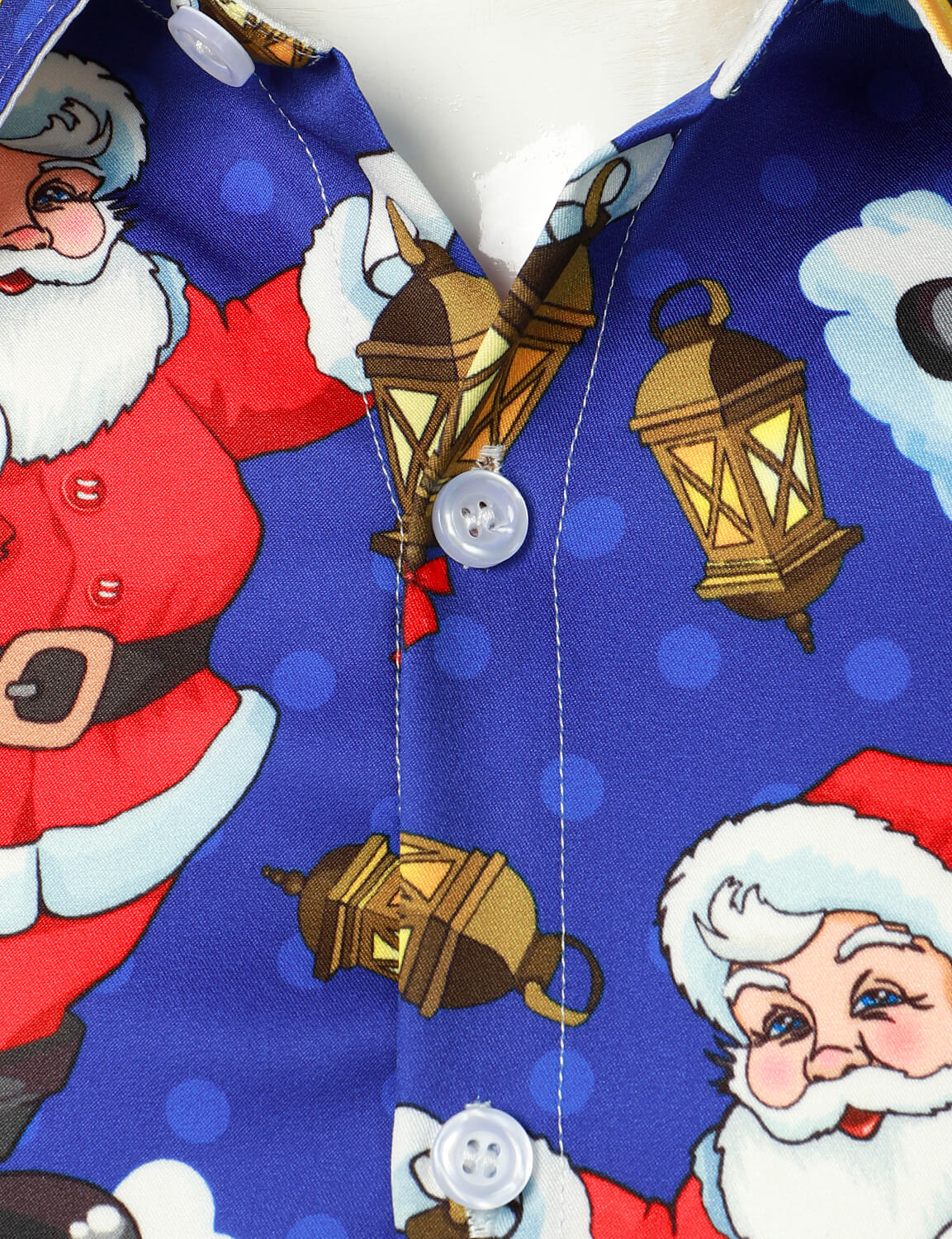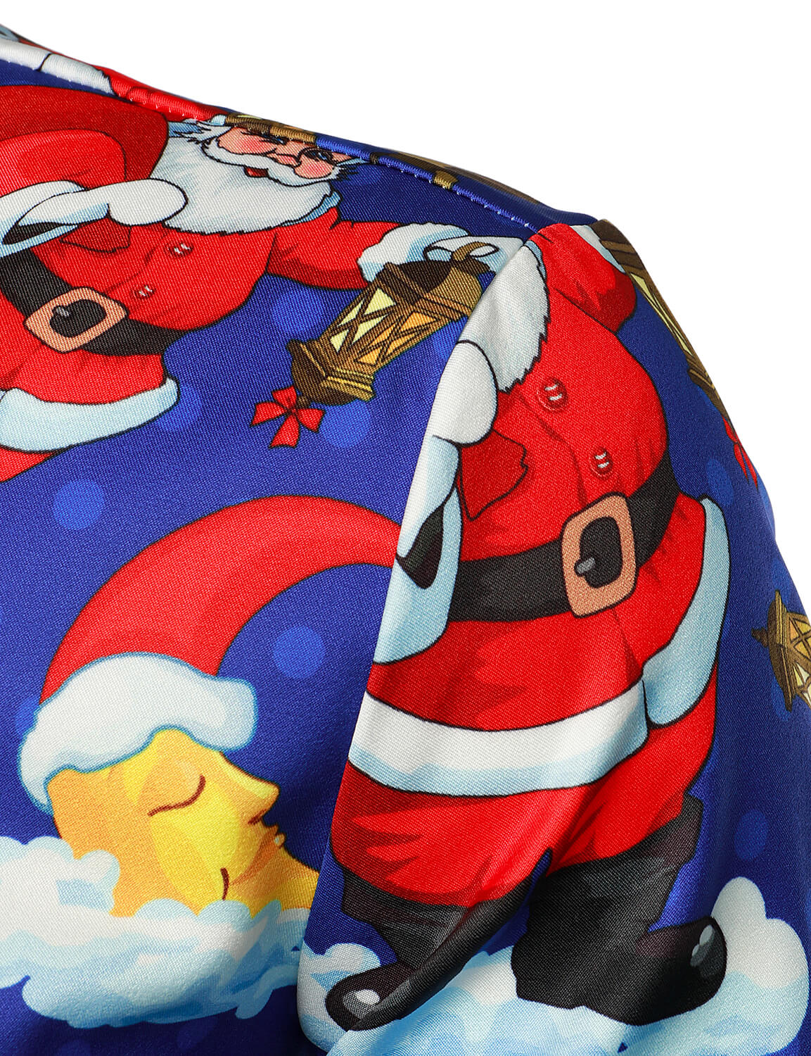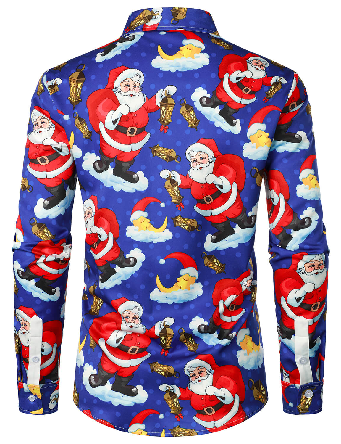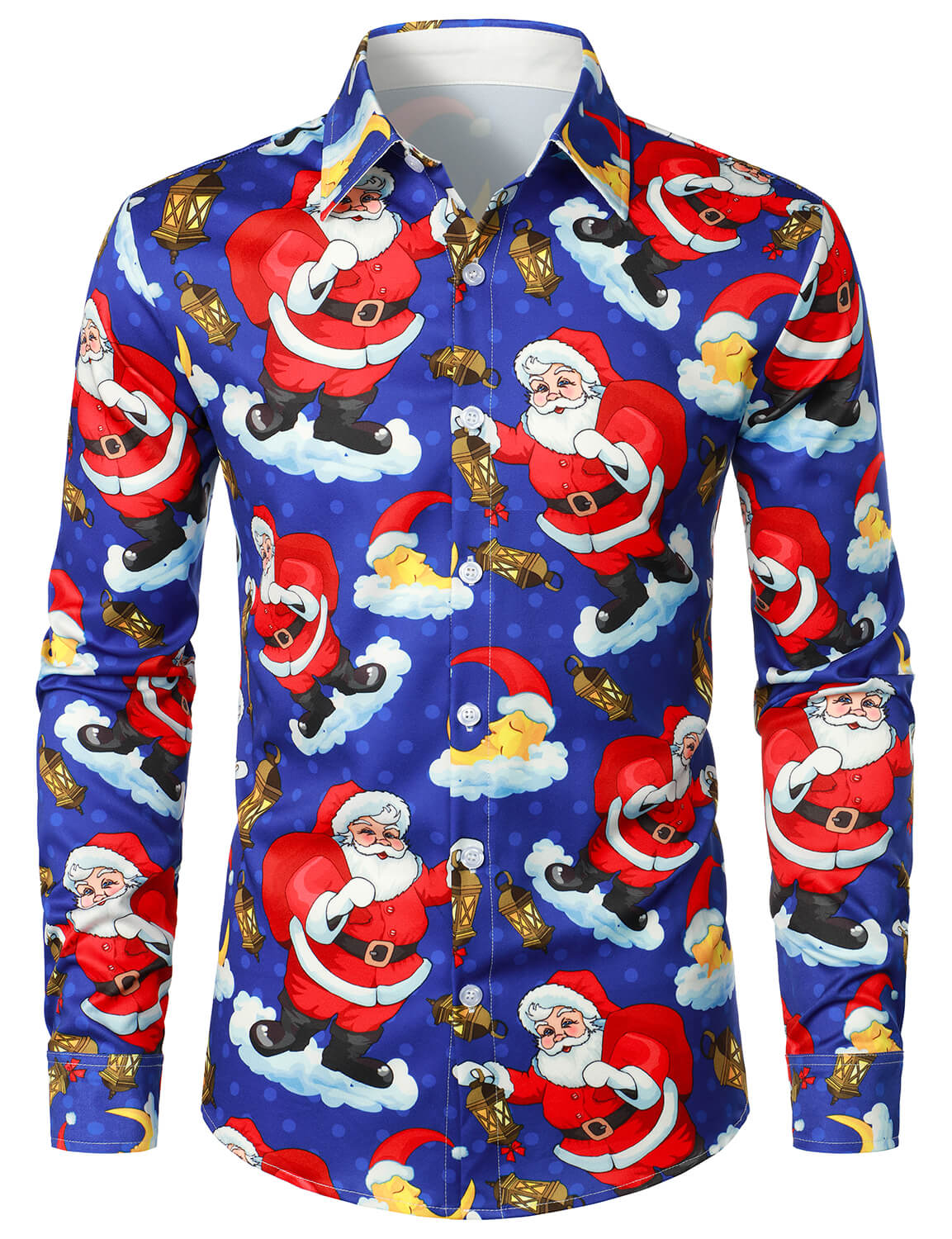 Men's Santa Claus Christmas Button Party Funny Holiday Blue Long Sleeve Shirt