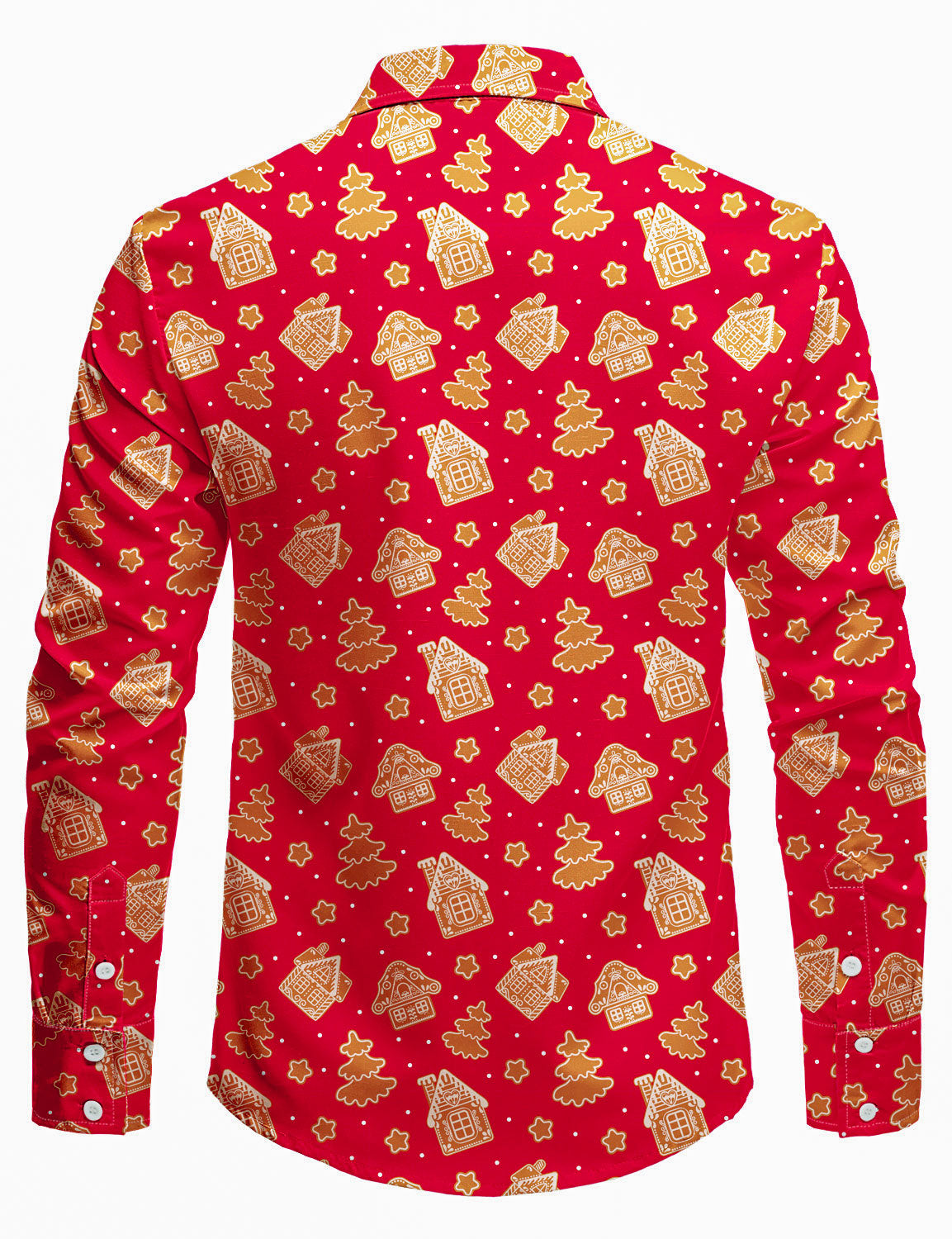 Men's Vintage Red Holiday Golden Christmas Tree Long Sleeve Shirt