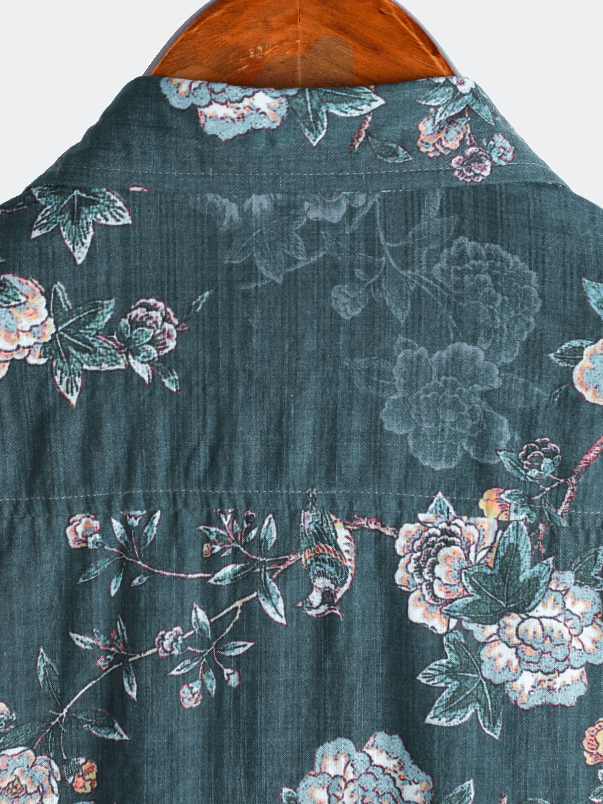 Men's Floral Print Camp Button Up Short Sleeve Casual Shirt