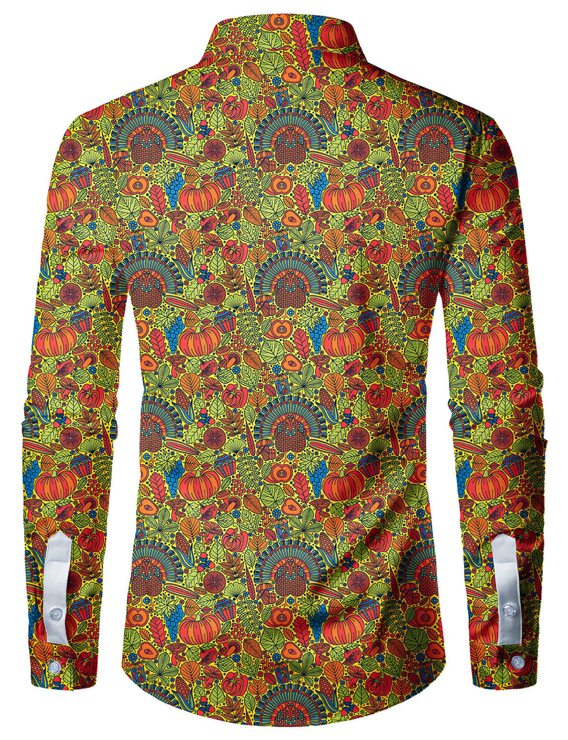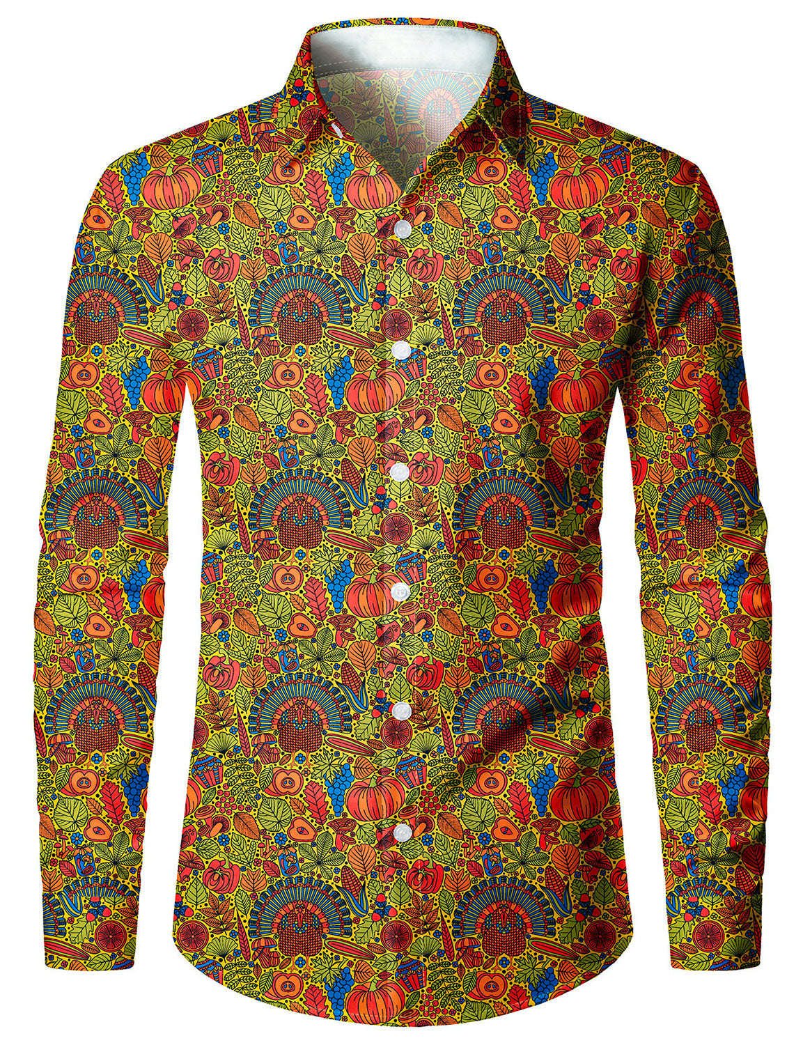 Men's Thanksgiving Festival Colorful Turkey Button Up Long Sleeve Holiday Shirt