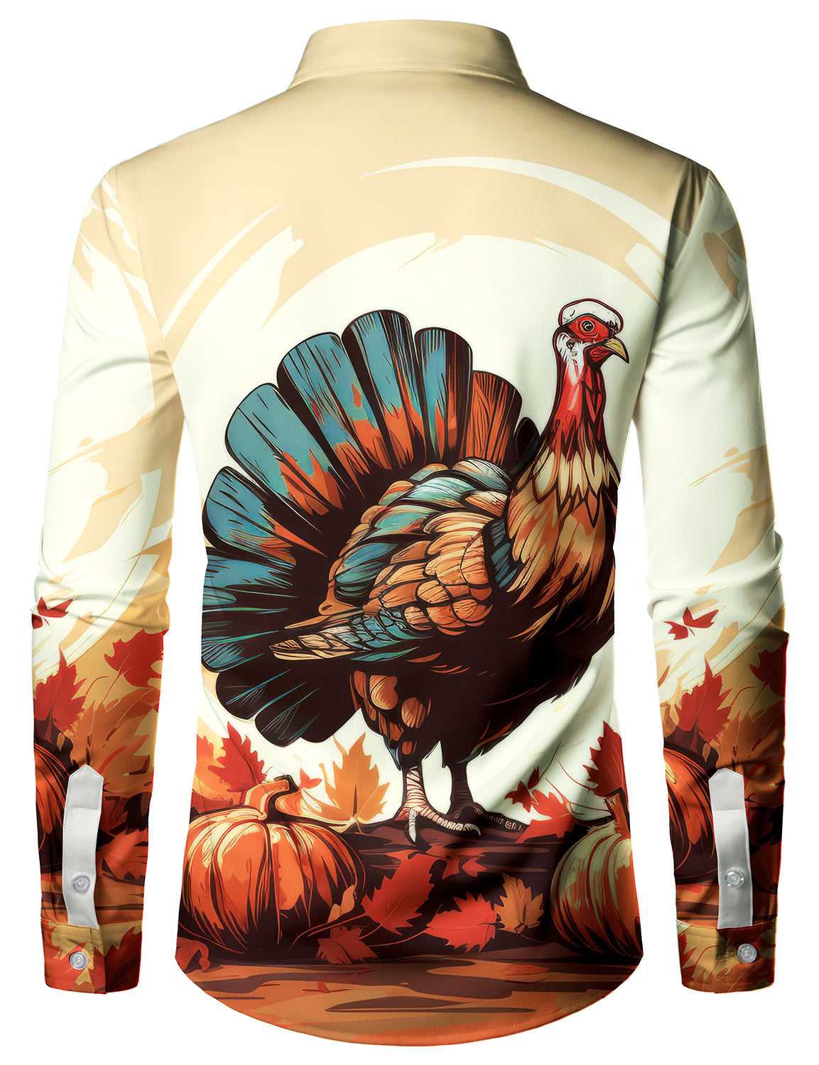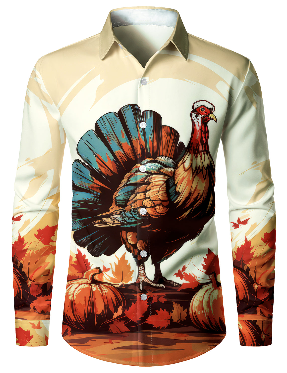 Men's Thanksgiving Festival Turkey Pumpkin Holiday Button Up Long Sleeve Shirt