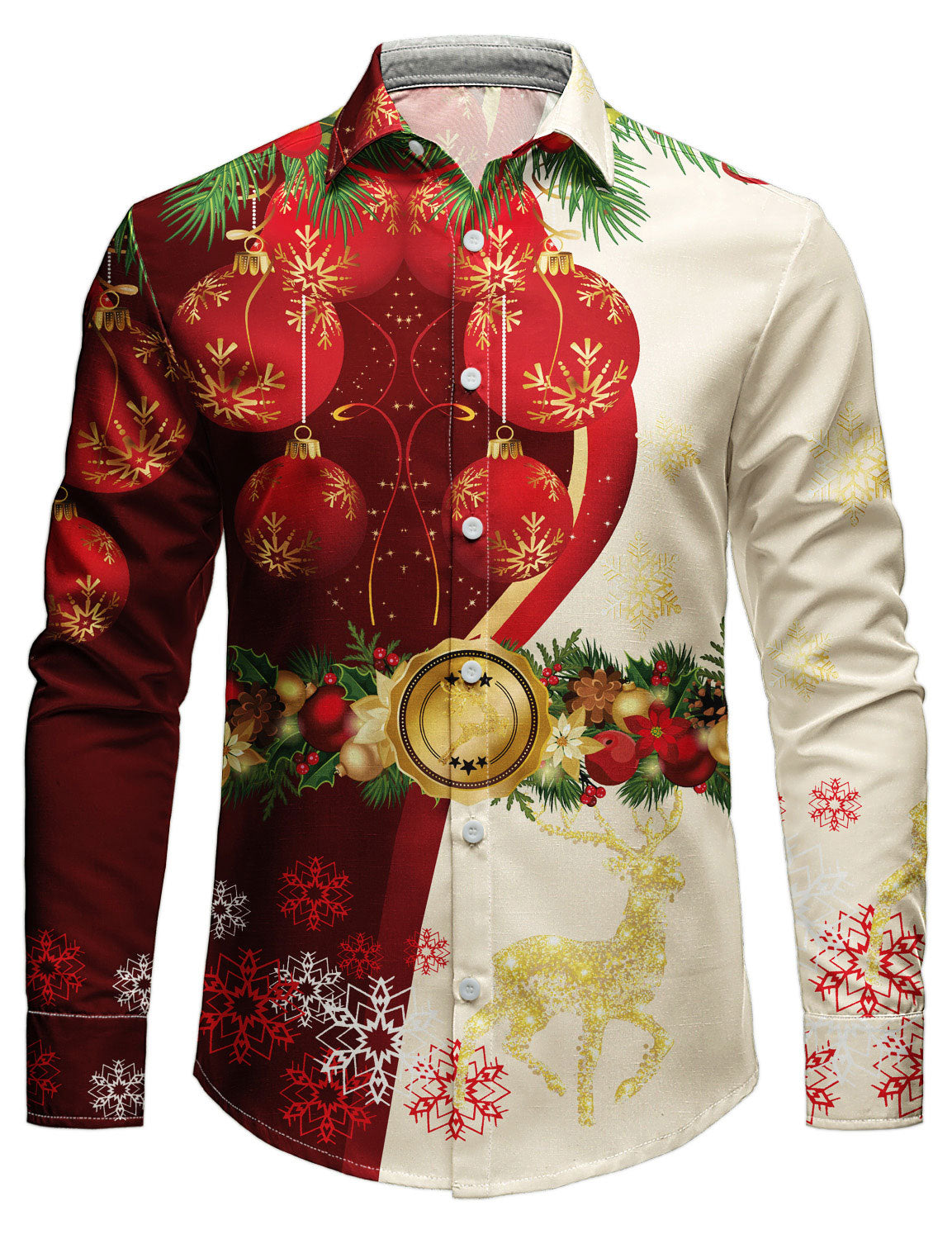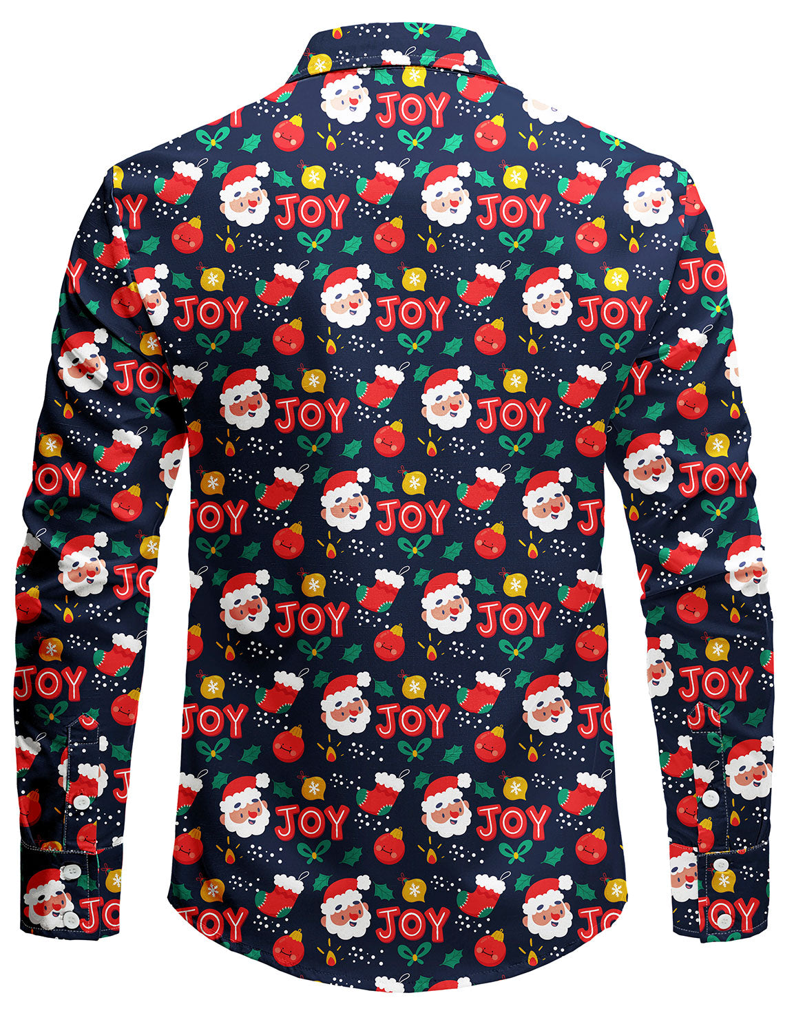 Men's Christmas Cute Santa Claus Printed Holiday Long Sleeve Shirt