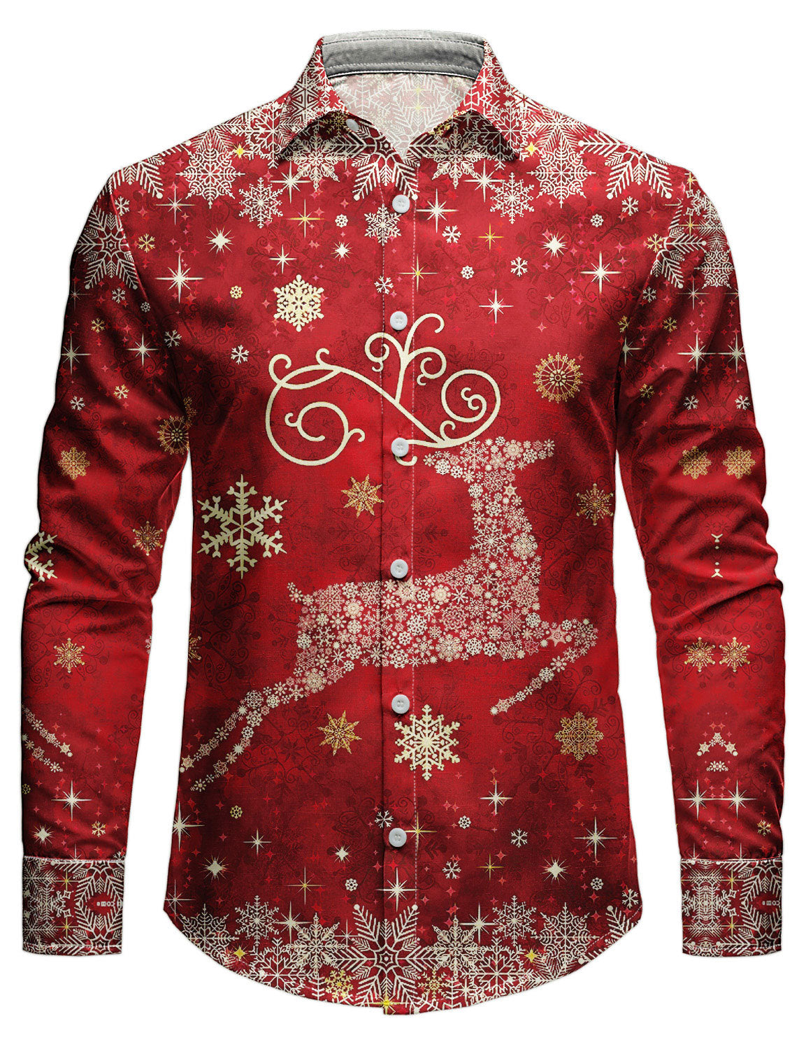 Men's Christmas Themed Reindeer Graphic Long Sleeve Shirt