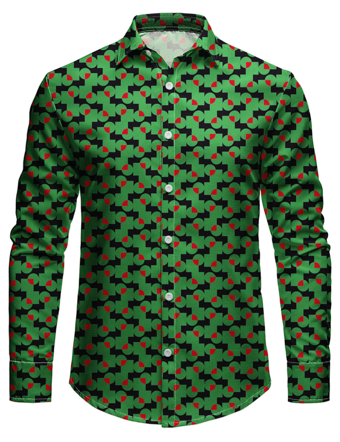 Men's Vintage Christmas Green Geometric Print Holiday Long Sleeve Shirt