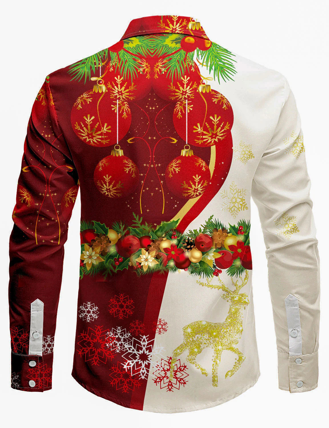 Men's Christmas Themed Top Red Funny Outfit Vacation Long Sleeve Shirt
