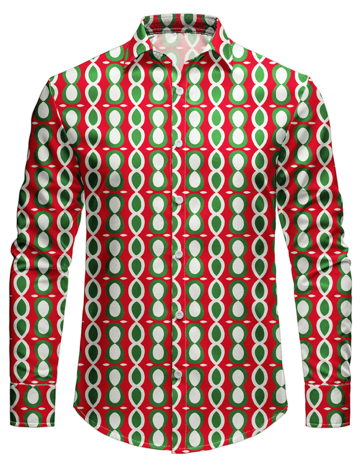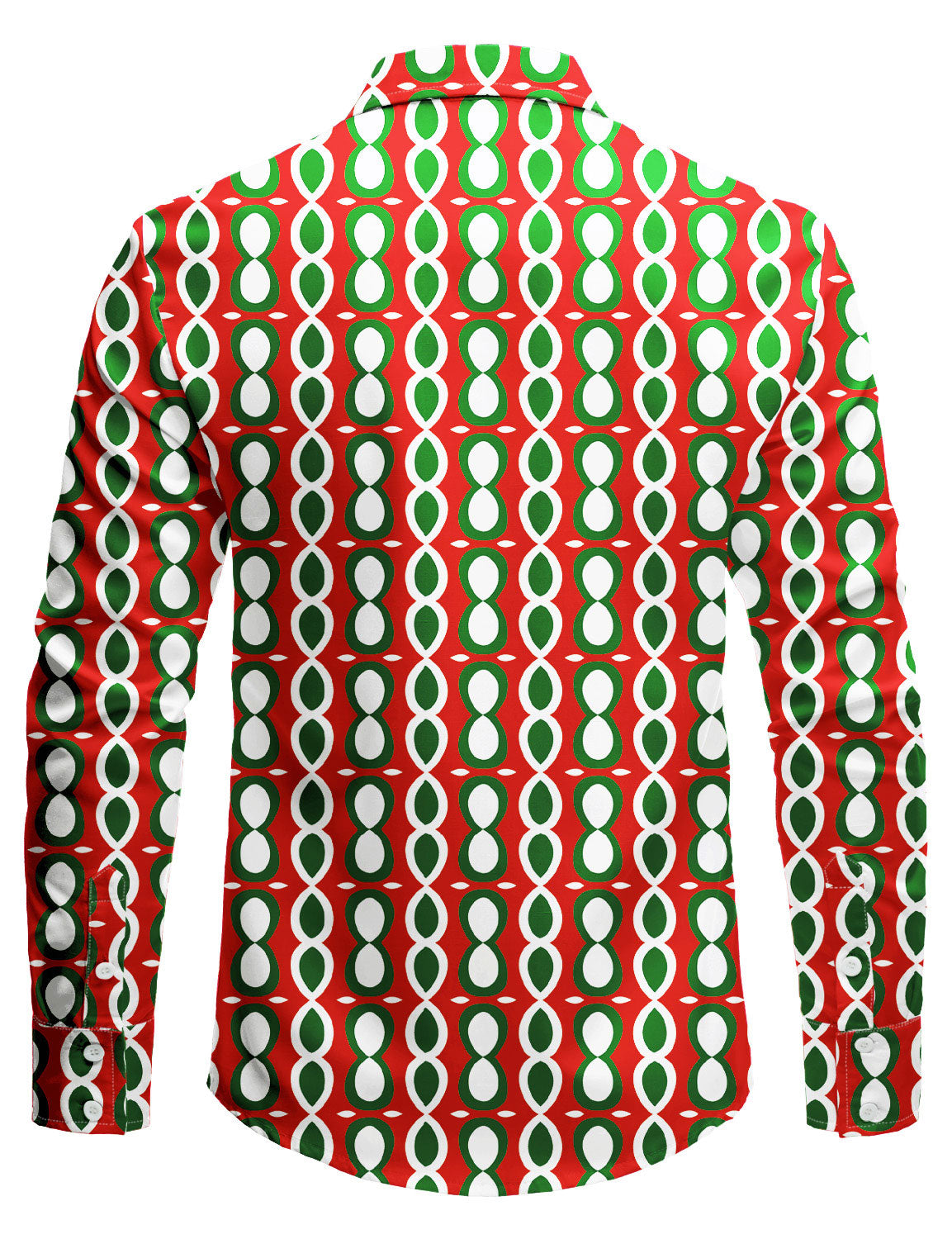 Men's Vintage Christmas Geometric Printed Holiday Long Sleeve Shirt