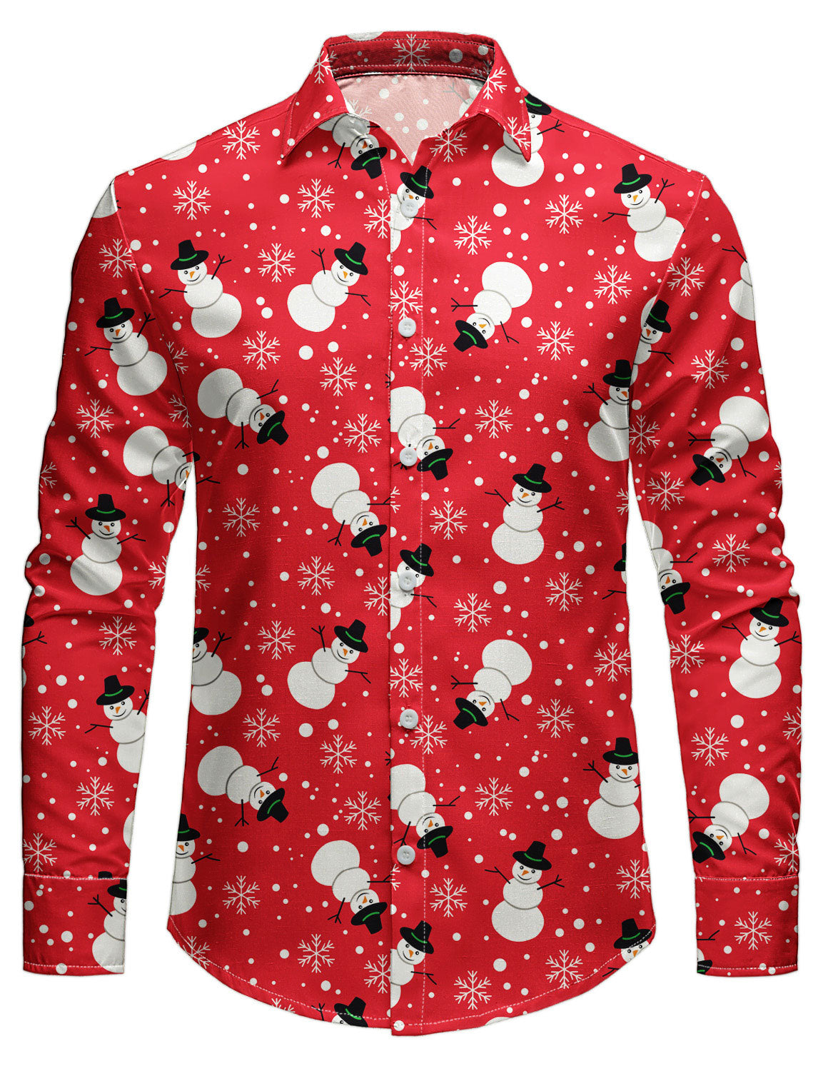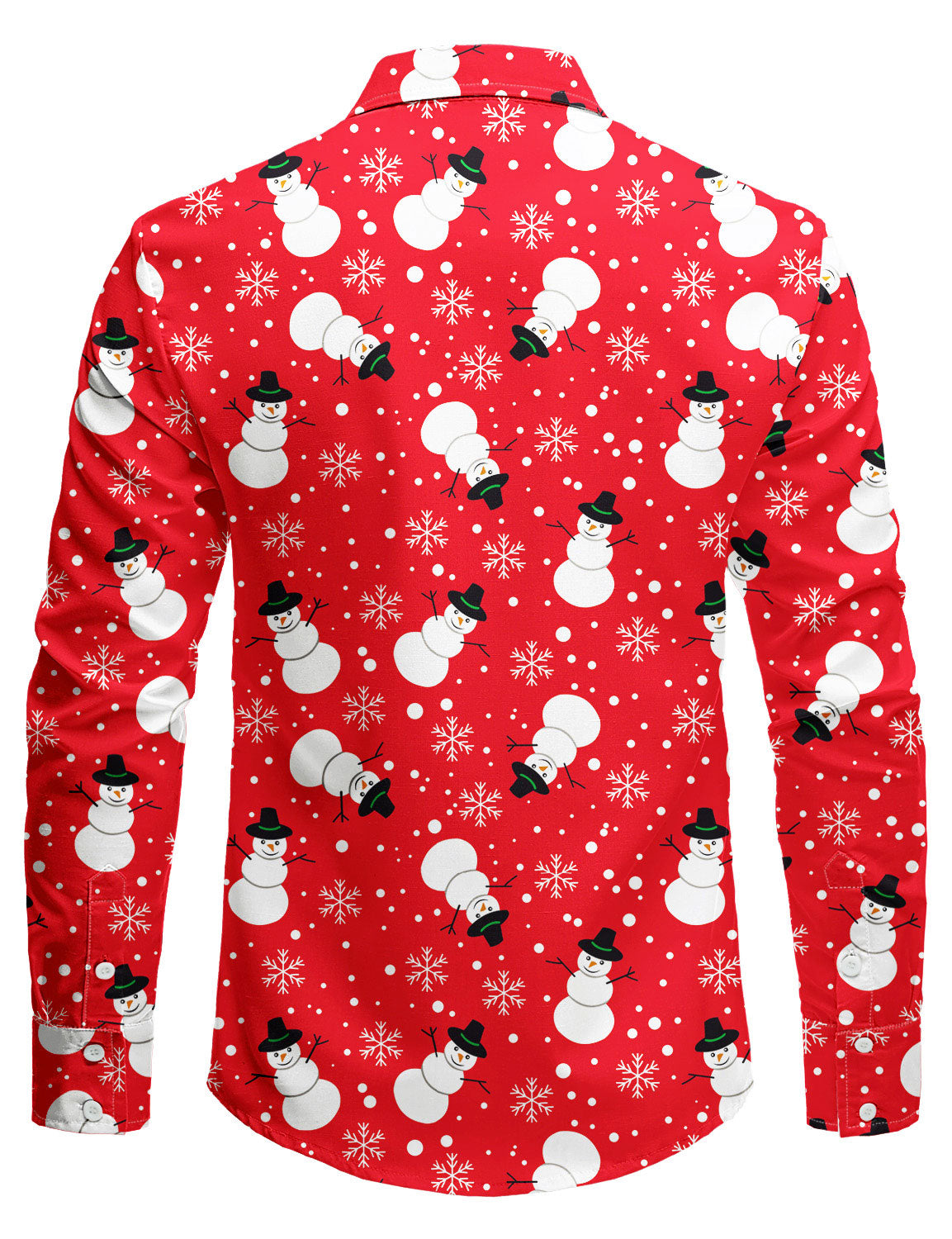 Men's Christmas Snowman Print Casual Button Long Sleeve Shirt