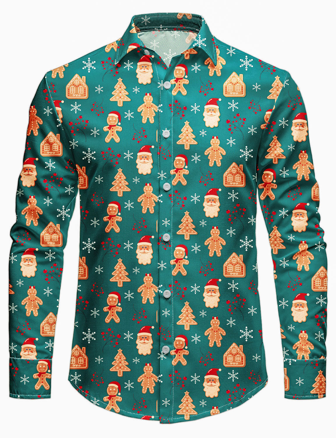 Men's Funny Christmas Cookie And Tree Print Holiday Long Sleeve Shirt