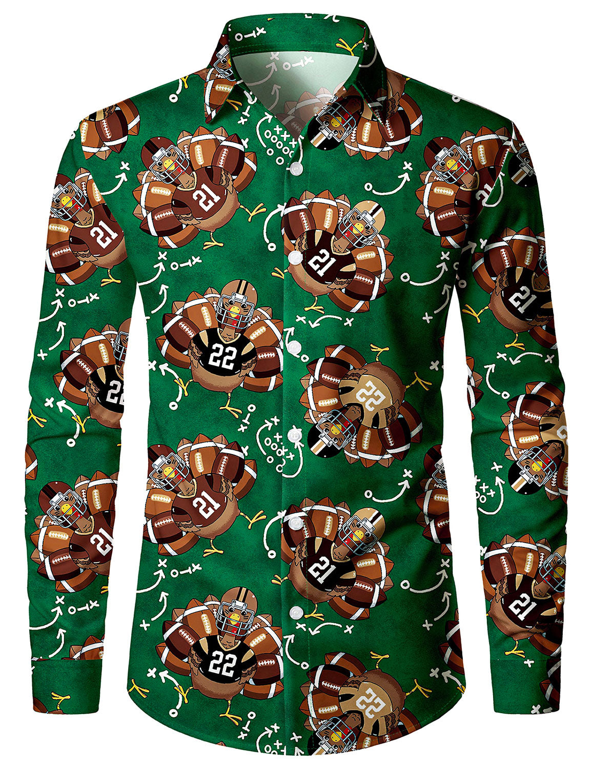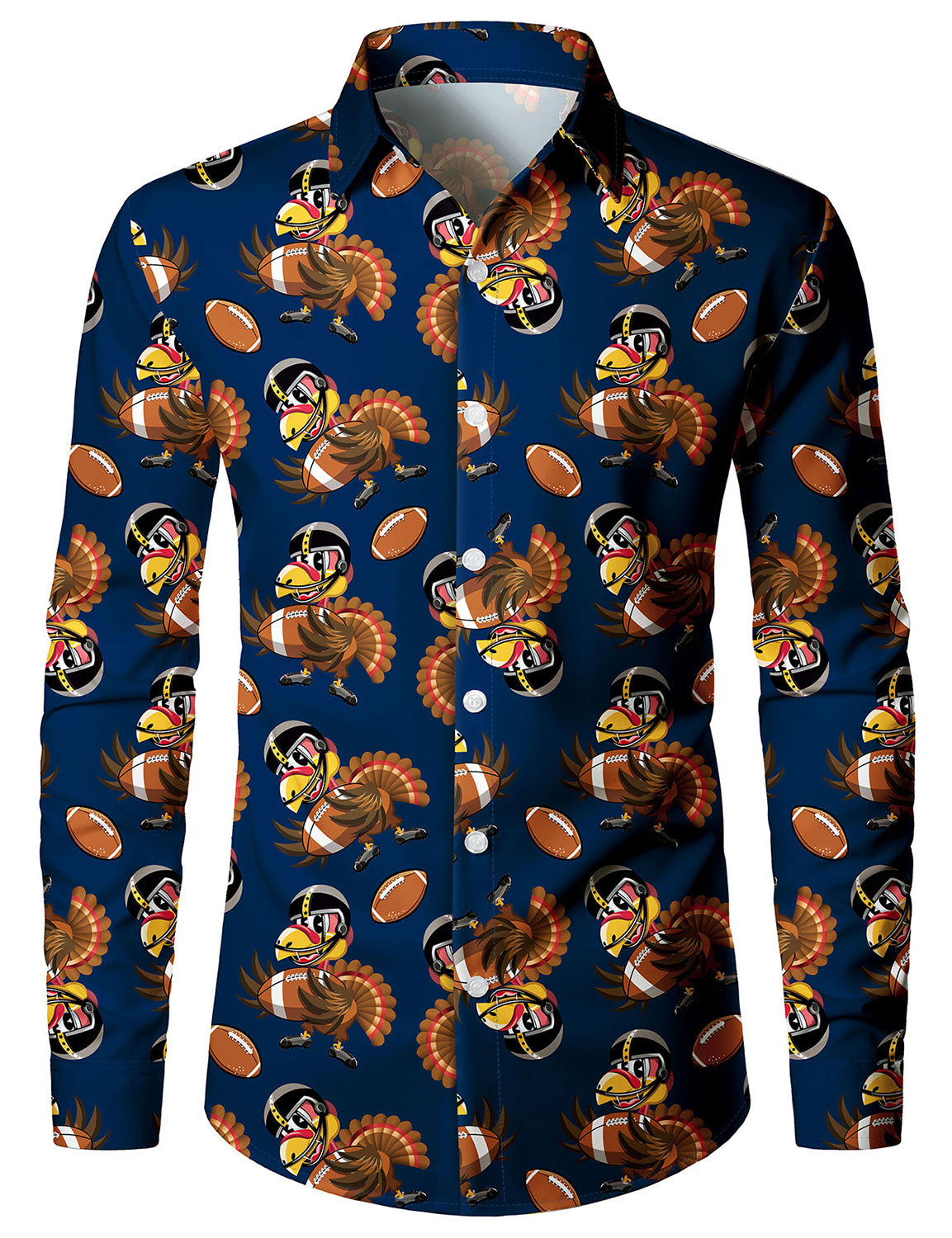 Men's Cute Thanksgiving Turkey Football Holiday Button Long Sleeve Shirt
